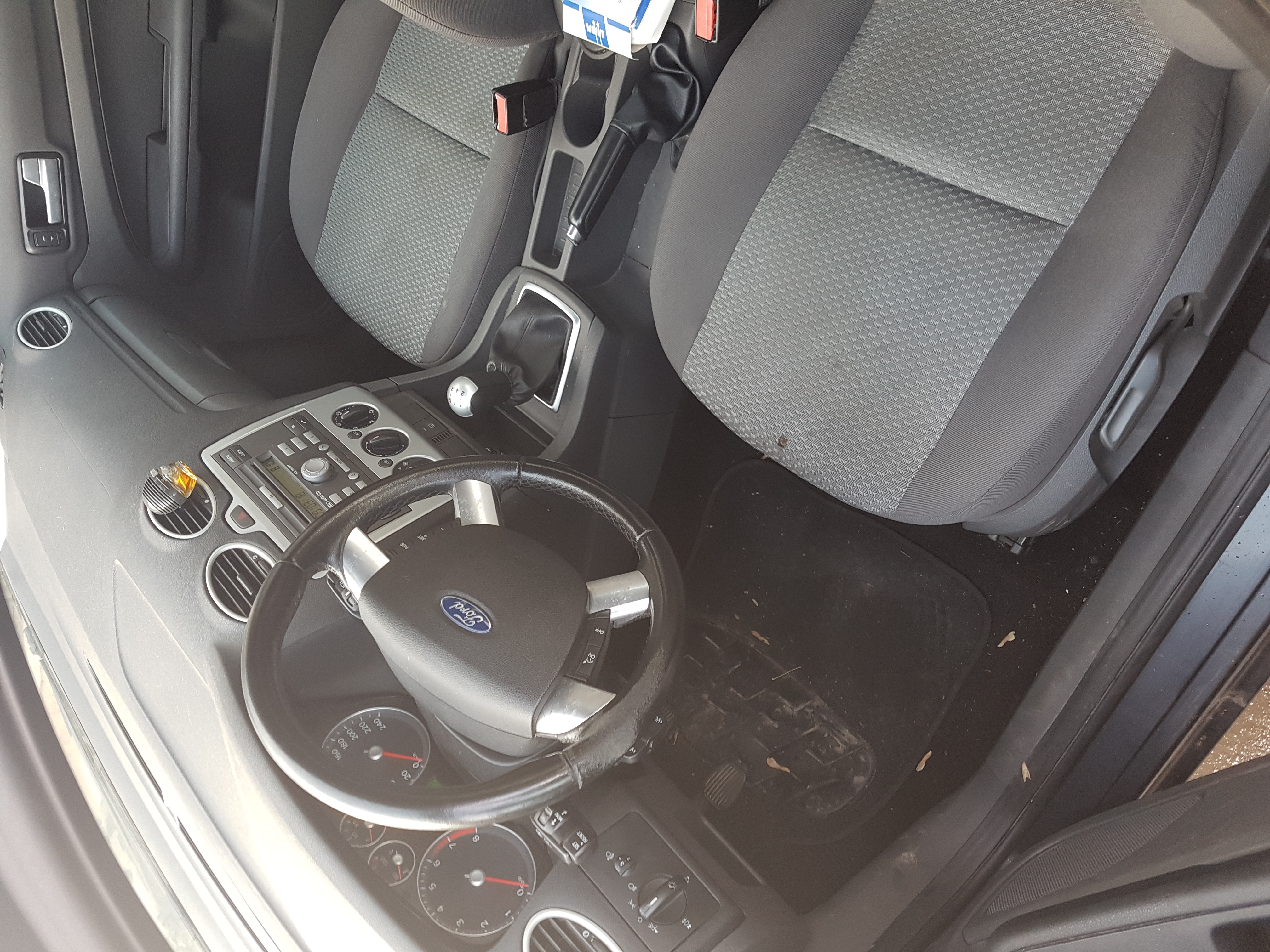 ) si volanul usor uzat pe o portiune mica (a nu se deduce ca km nu sunt reali, se demonstreaza cu acte si verificare la service Ford + intrarile la ITP, am inteles de la cei de la Neste ca e o problema cunoscuta de Ford).