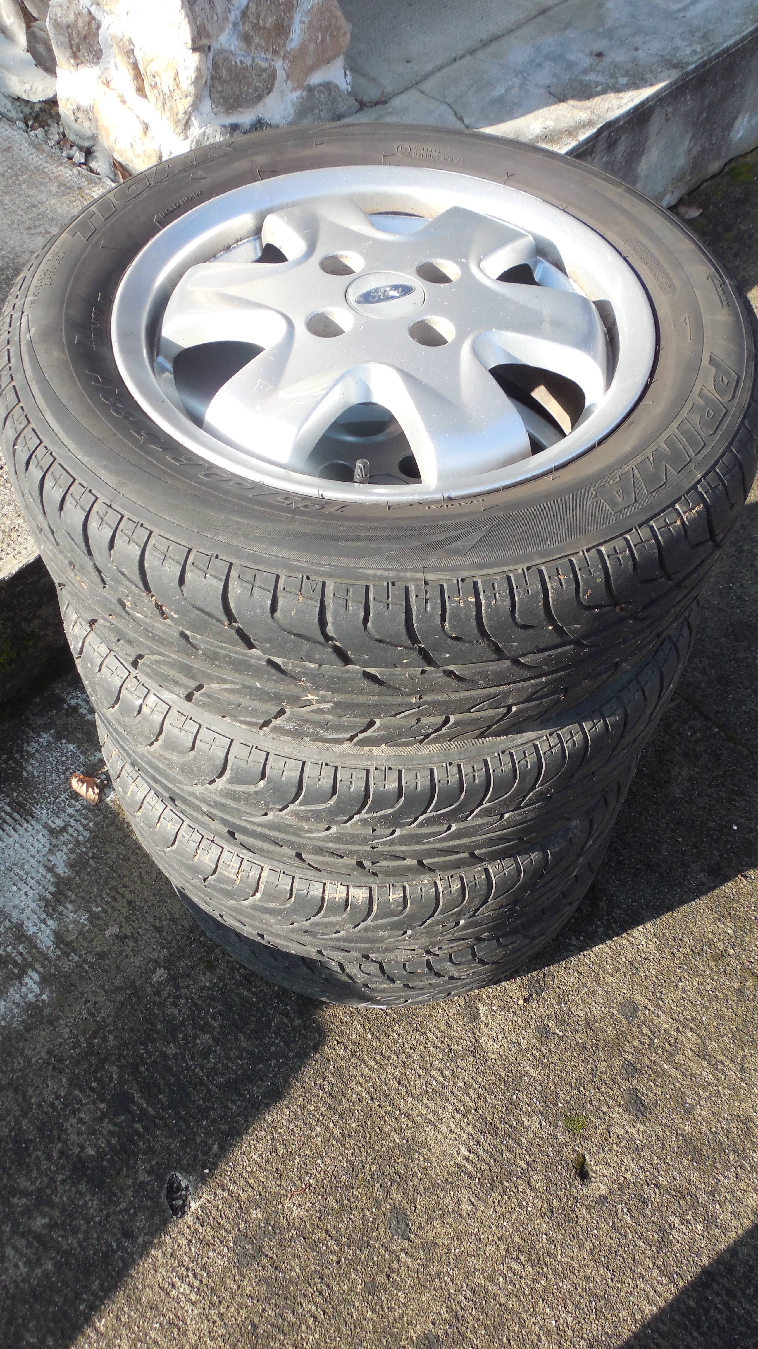Se da cu 4 roti cu jante tabla cu cauciucuri de iarna an fabricatie 2014 si 4 roti jante aliaj originale Ford cu cauciucuri de vara an fabricatie 2016