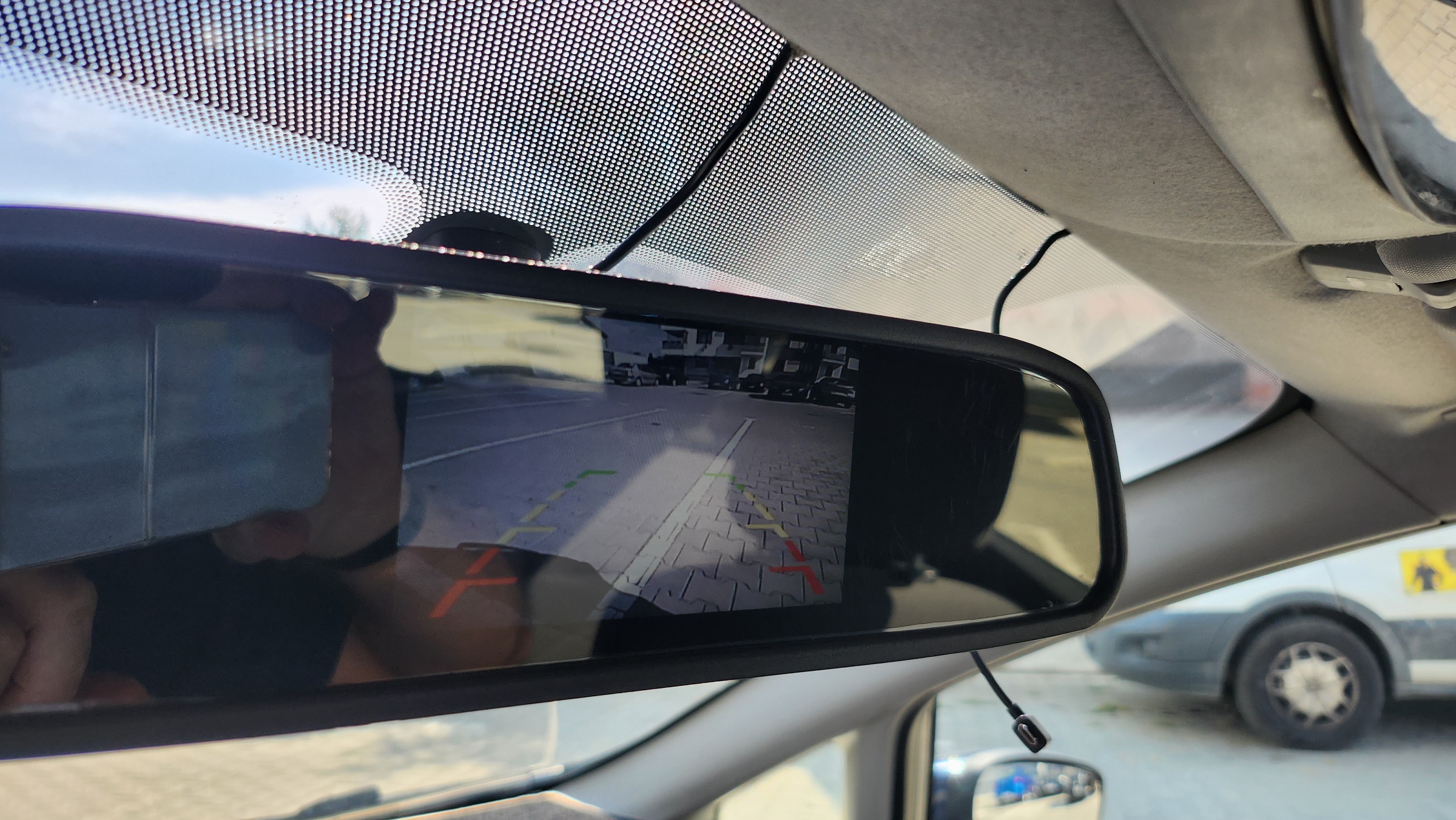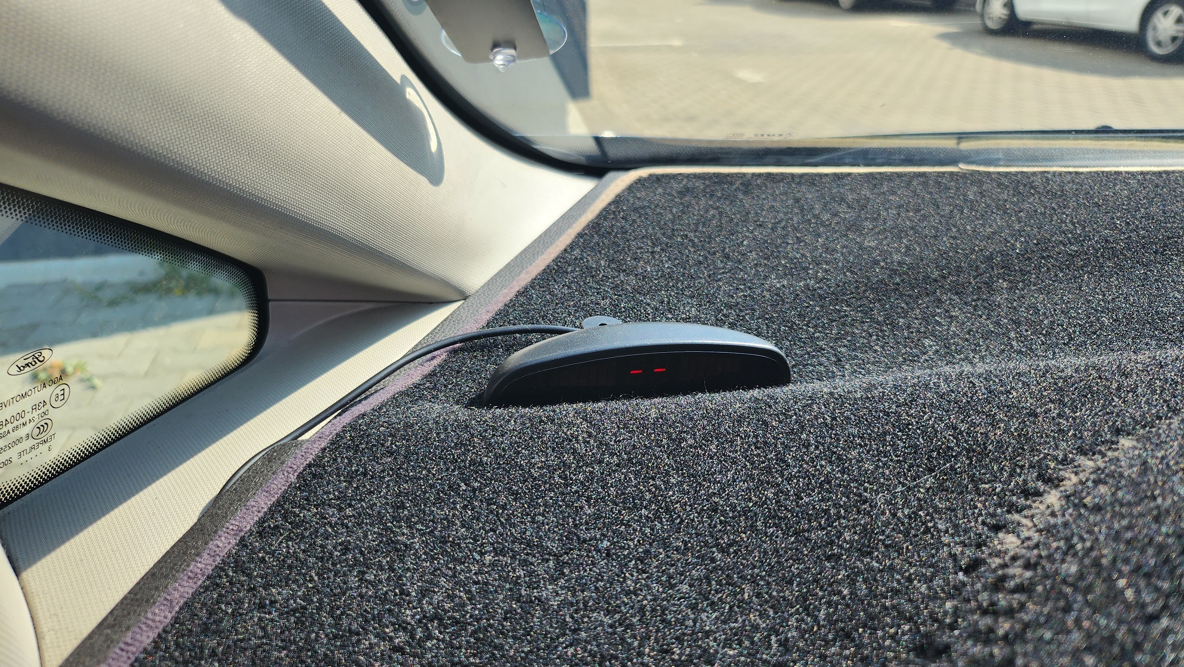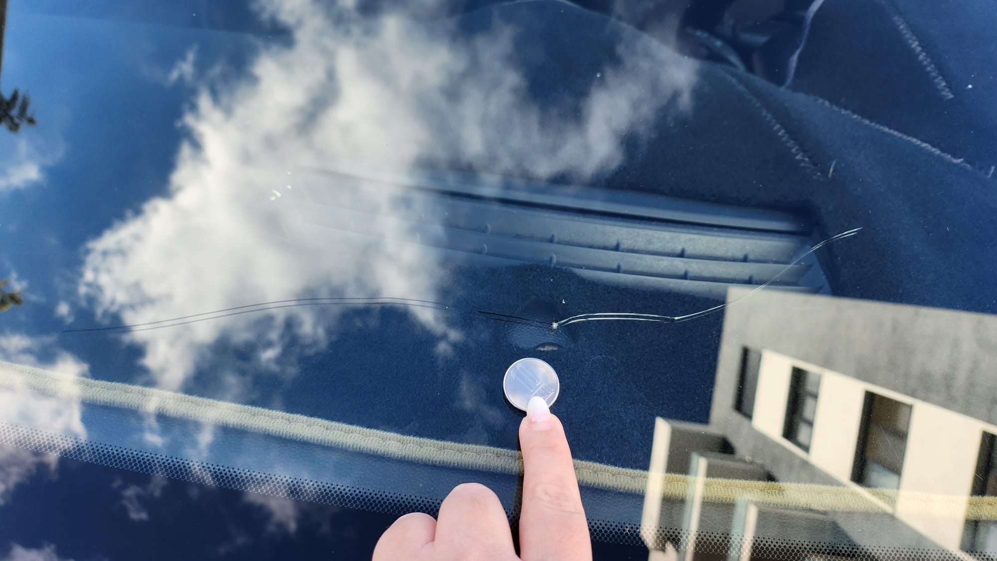 Parbrizul are o fisura in partea inferioara, dupa cum se poate vedea in fotografie.