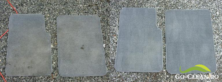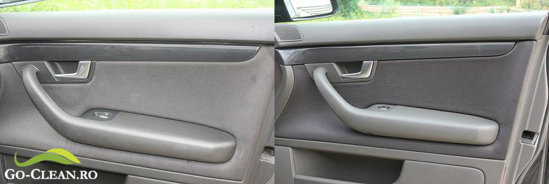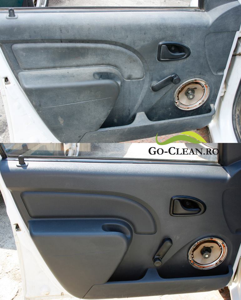 Procesul de curatare dureaza aproximativ 4 ore pentru un interior complet. Pozele initiale sunt facute dimineata, cand, din cauza luminii slabe, aparatul foloseste automat blitzul.Pozele de dupa sunt facute la pranz, dupa uscare, si au lumina naturala(se vede in al doilea set umbra de pe scaun). Iar consola centrala este identica pentru ca este aceeasi masina.