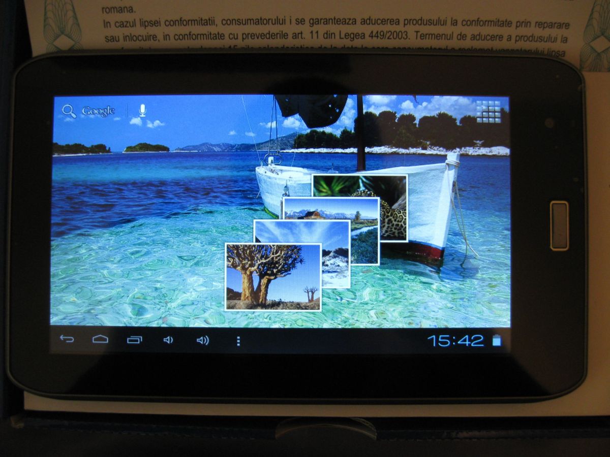 Prima impresie care mi-a lasat-o a fost una destul de buna. Tableta are un display bun cu niste culori naturale si cu un contrast foarte bun. Se misca foarte bine prin meniu si se aude destul de clar. Pentru o tableta de nivelul ei nu prea ai ce sa-i reprosezi. Dupa parerea mea este superioara unei tablete Allview Aldro (tinand cont ca cele 2 firme romanesti sunt concurente).