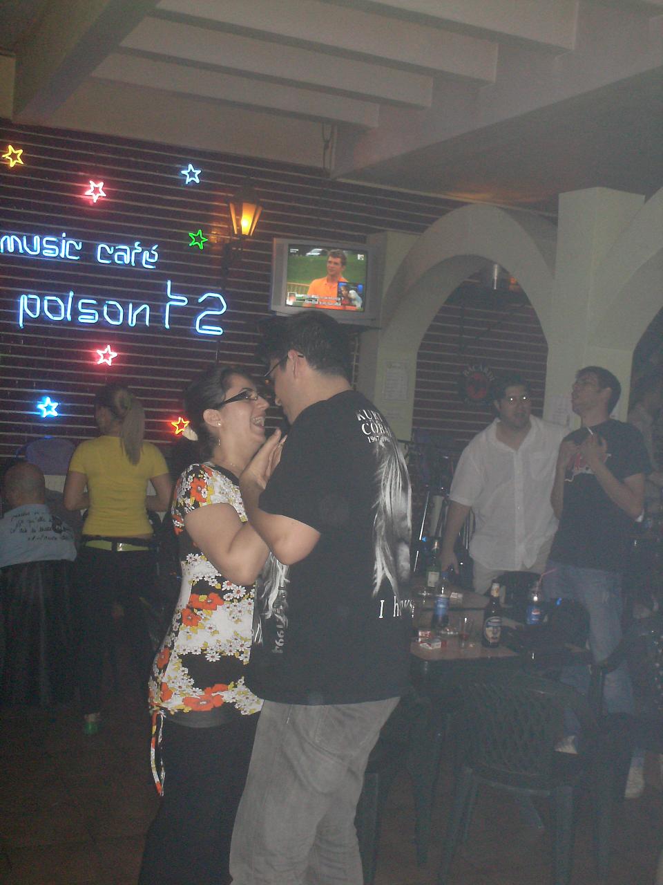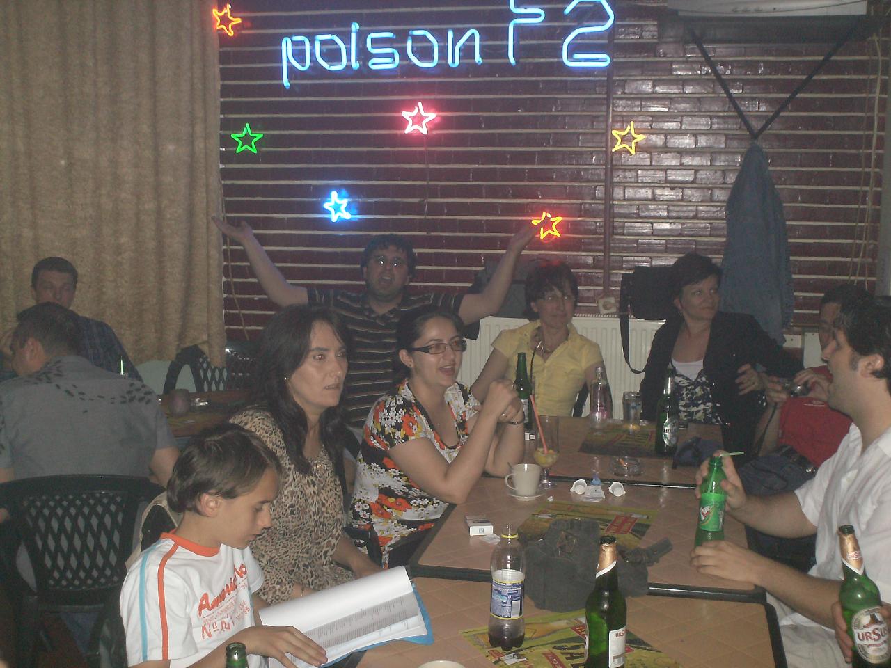 Inca o seara super in Poison! Am dansat, am baut si limonada, am si cantat (asa cum stim noi, sub forma de urlet). S-a auzit ClubFord in boxe, asta multumita lui BogdanV; unde mai pui ca am ajuns si acasa (shine _ trai-ti-ar neamu' prin alianta). Am avut KomandantR,KomandantaG, miniKomandantC, adi cel pururi verde, delegatie de peste hotarele Bucurestiului, una bucata emsitan, fotomodel si fotomodela si cuplu de stralucitori (fara ca ordinea numirii sa conteze) :)