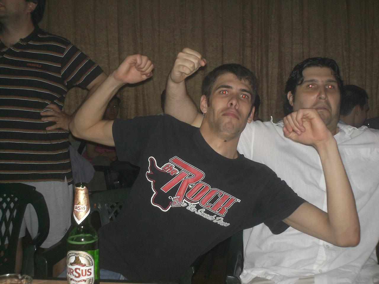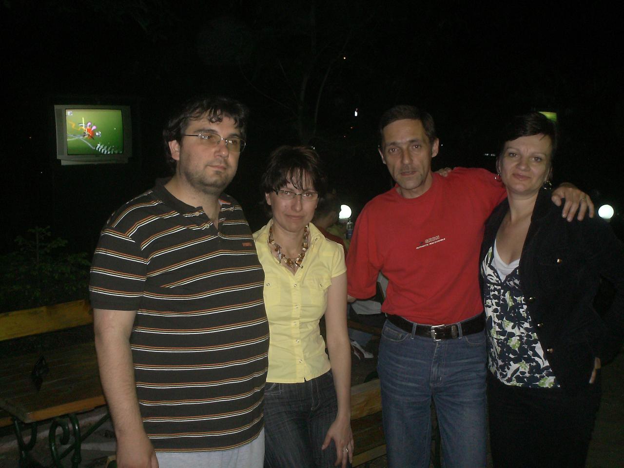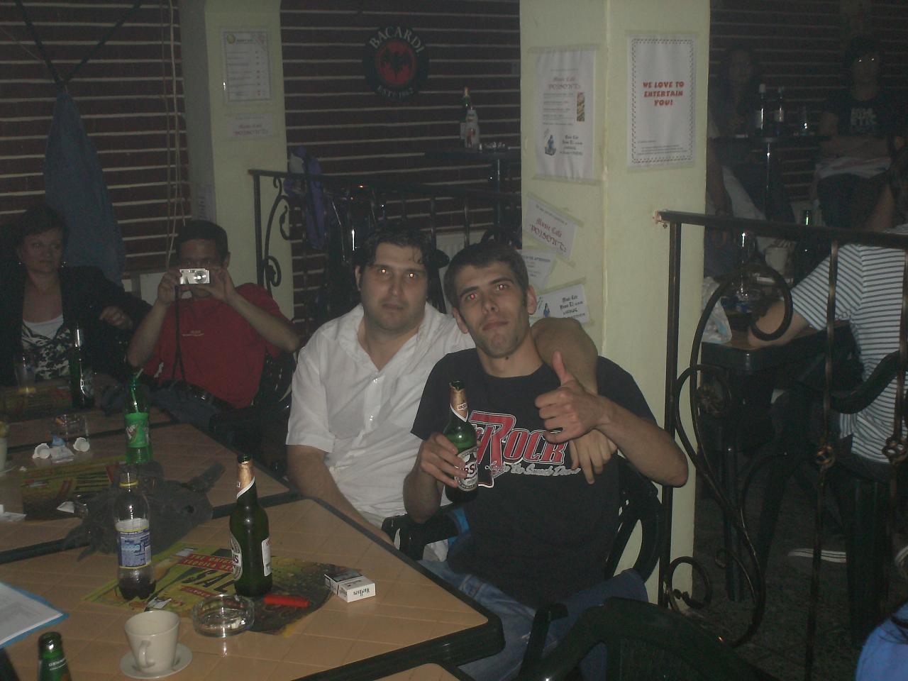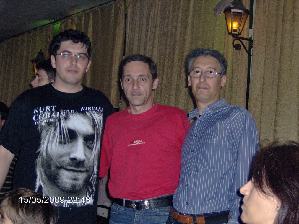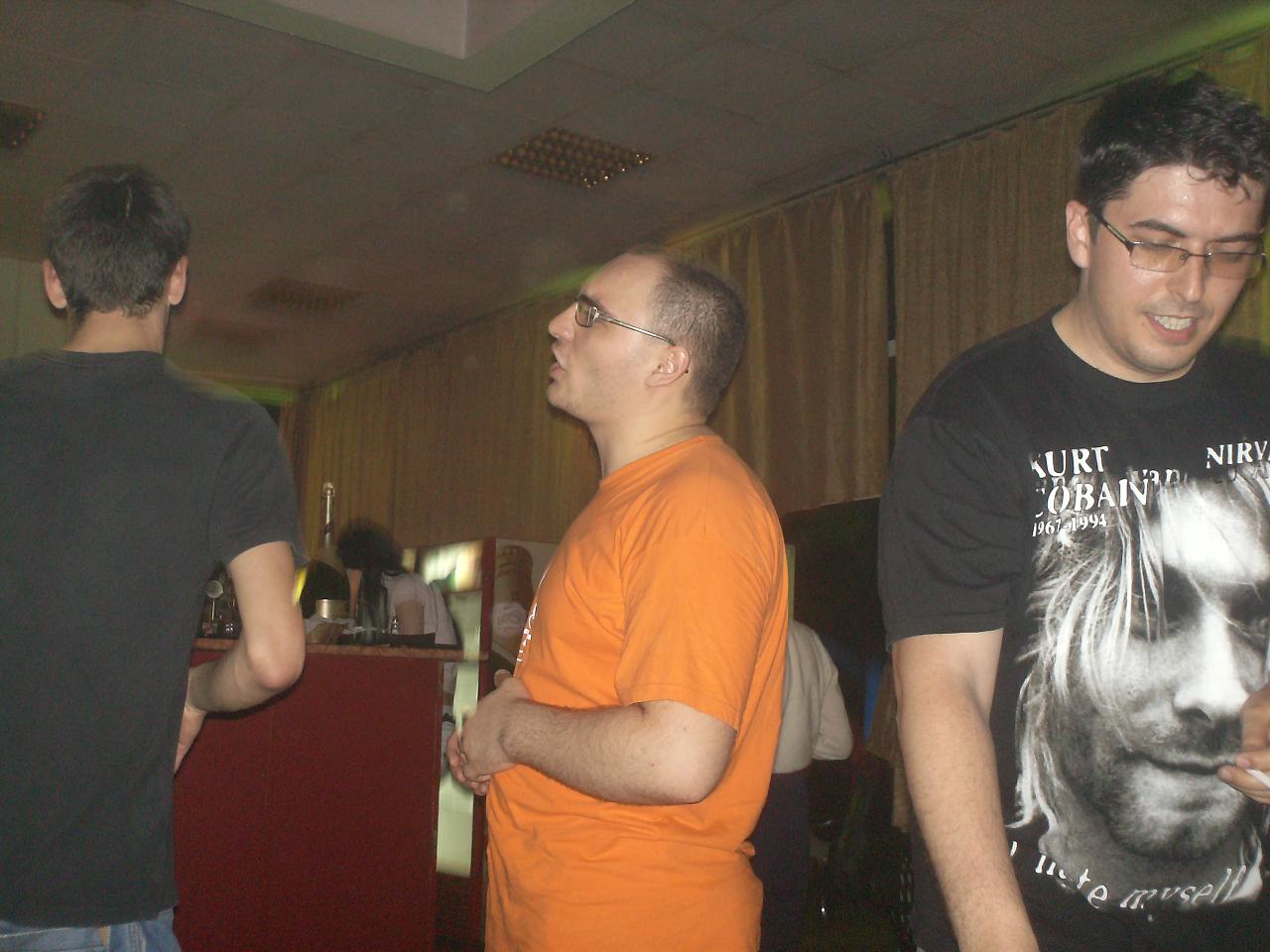 -o gasca de baieti foarte frumoasa si unita, cu niste figuri de pomina :)) , oameni care stiu sa se distreze intr-adevar si pe care ii felicit din suflet pt. asta....imi pare rau ca nu am putut sa va arat si io ce pot...deh, mai greu cu integrarea la prima vizita si fara sa consumi ceva "grade" :D. Ma bucur ca i-am cunoscut pe cativa (Nenea&madam Fordescu, shine&prietena, mctano&sticleledebere :)) ) si ma bucur ca i-am revazut pe cei pe care-i cunosteam deja (Bogdanv, Adispanu&Mirela, Adi Cristea, KomandantuR&sotia&pustiul)