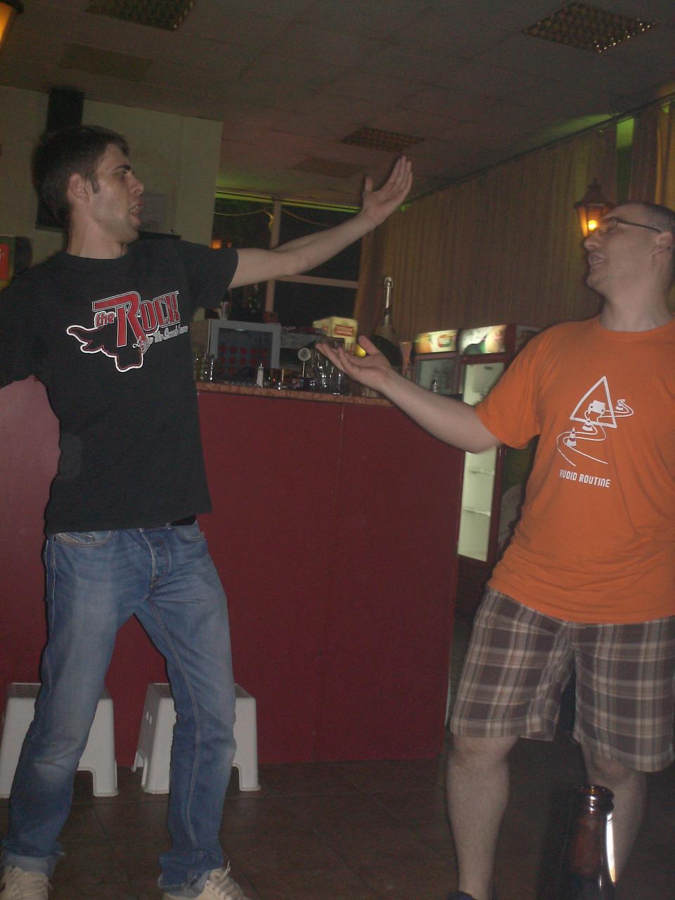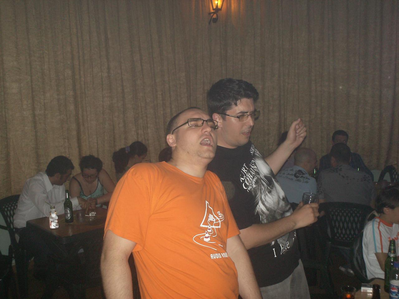 Cum le-am zis si baietilor aseara, eu am mers crezand ca o sa "ne radem", noi de altii, altii de noi. Pe naiba, erau niste baieti si niste fete acolo cu niste voci...8-> Noroc ca ne-am ales melodii d-alea de tipat/urlat si nu s-a prins nimeni ca nu avem cariera de viitor in muzica. >:)