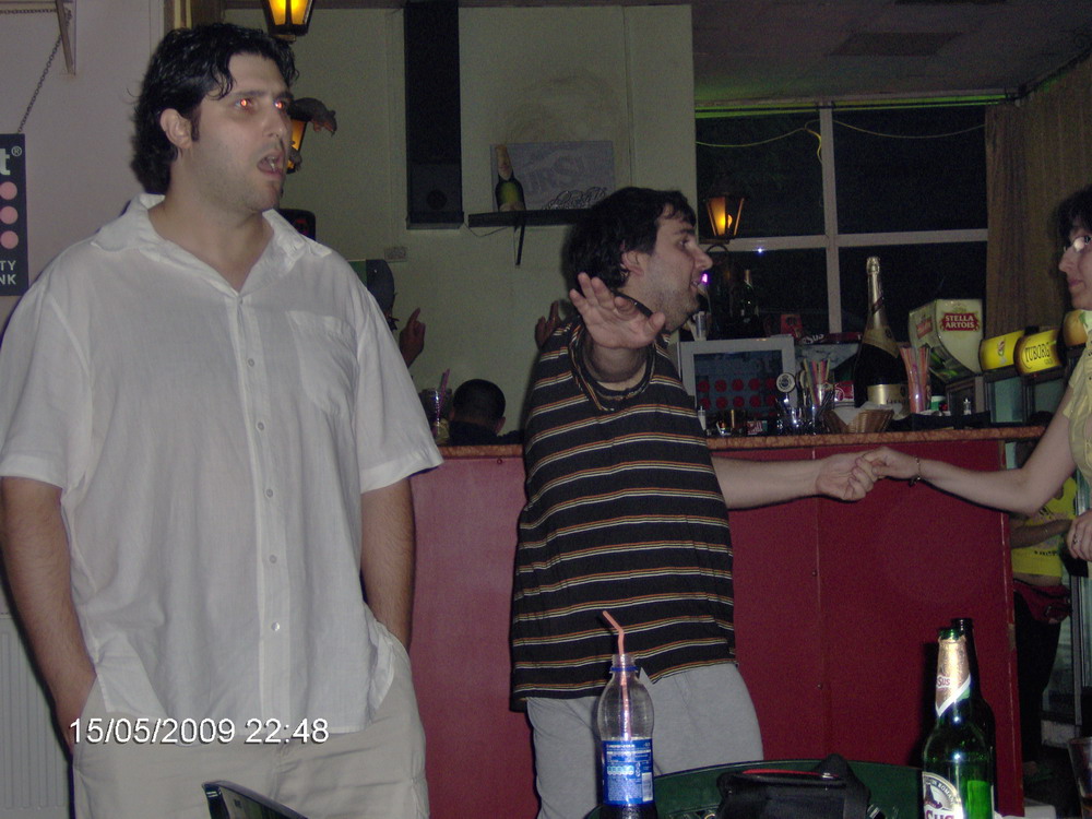faza tare e ca noi ne-am inscris cu melodia dar am plecat afara sa ne arate KomandatuR ce a patit la masina. si auzim noi piesa: bah, asta e a noastra. Dar cine o canta, ca noi suntem afara... :)) si am facut poze data trecuta si le-am urcat, da?!