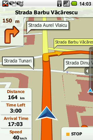 Asa arata iGo Amigo (este o simulare, butonul de stop si bara din dreapta nu apar in navigatie).