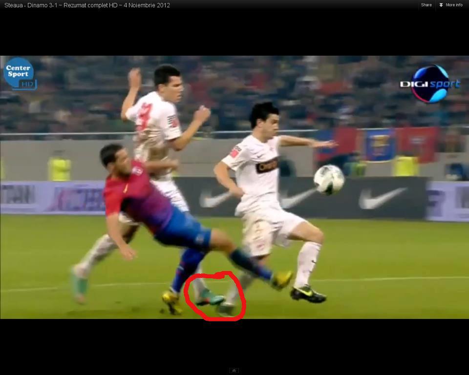 Alex, aceeasi poza mi-a aruncat-o si prietenul infocat de care vorbeam mai sus. Problema e ca imaginea e capturata cu o secunda mai tarziu in mod intentionat, asta e la 4:02, dar sa ne uitam la 04:01 cand Chipciu il loveste peste pulpa pe Matei. Poti vedea si la 3:54 ca nu atinge mingea stelistul.