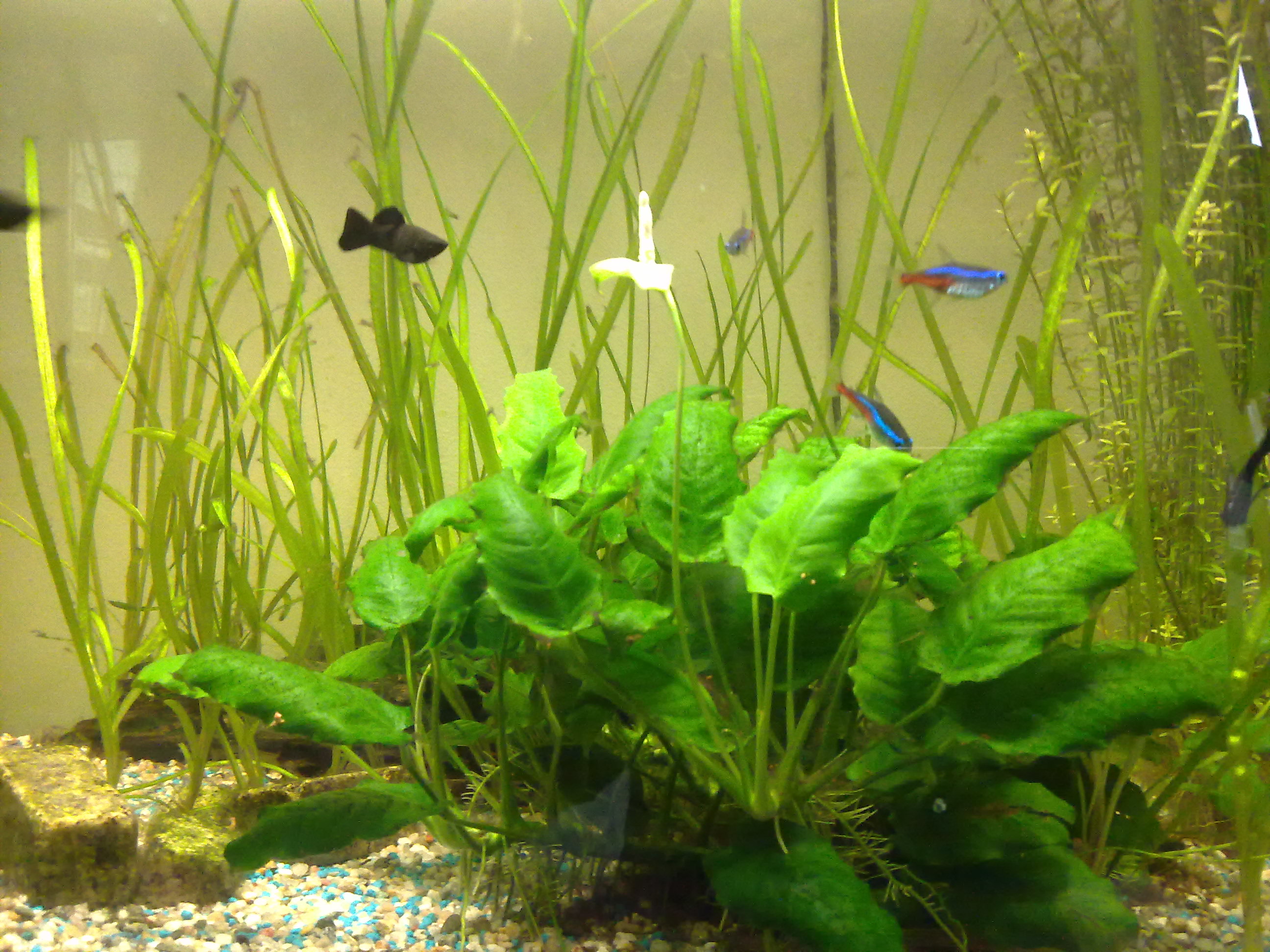 Este Anubias... foarte rar sa vezi asa ceva inflorit intr-un acvariu...