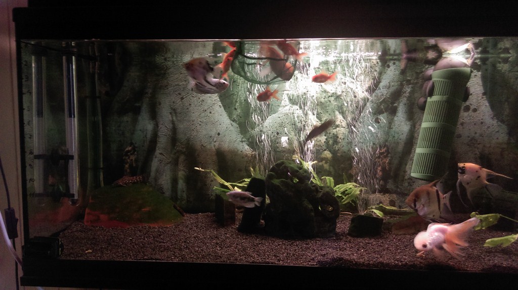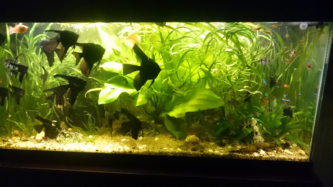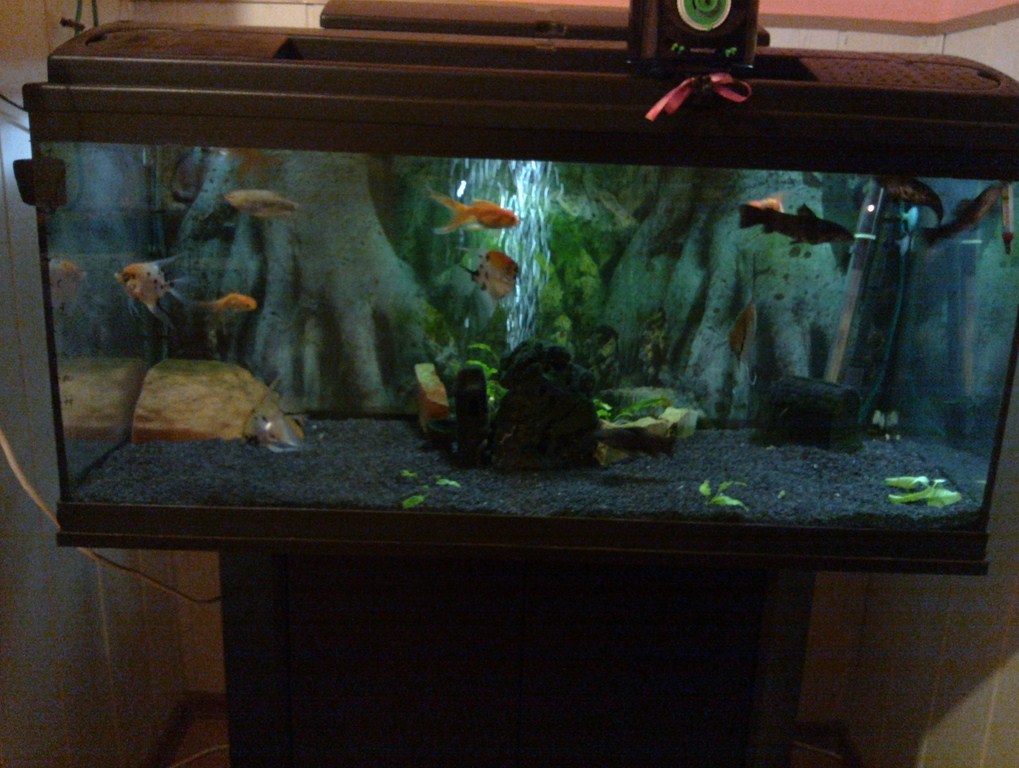 Si eu mai am acvariul de 180 litri, cativa scalari, "o turma" de gara rufa nazdravani, cativa cory, 2 ancistrus, se poate sa mai fie si cativa otto, ceva melci asasini si cam asta e ciorba. Am avut si ceva lumina custom cu LED-uri (2x22W - 44 leduri de 1W), dar acum nu prea mai am timp / plante asa ca e dezactivata. Poate imi fac timp sa va prezint agregatul.