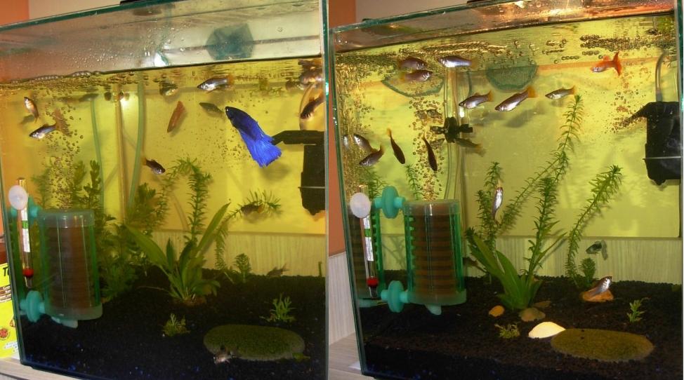 Ce este bine, e ca pestii, si cei 2 betta, dar si femelele guppies, sunt foarte activi, se plimba in tot acvariu, nu stau doar la suprafata sau la fund.