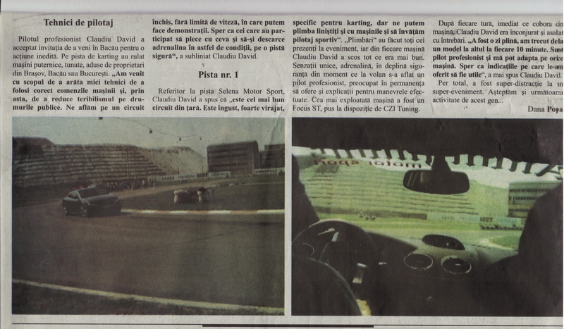 Pentru ca unii dintre dumneavoastra si-au anuntat dorinta sa se dea si cu karturile, am hotarit impreuna cu Claudiu sa facem si o mica intrecere de karting. tarifele sint 40 lei/15 minute kart de 9 cp. Probabil aceasta va avea loc spre sfirsitul zilei. Claudiu o sa va faca o mica demonstratie de karting cu un kart profesionist pe care se alearga in competitiile internationale. Este vorba de un kart de 28 de cai putere!!! iar despre cost va spun doar atit.. 15 minute.. 350 lei!!! Kartul este pus la dispozitie prin amabilitatea conducerii pistei de karting Selena Motor Sport!
