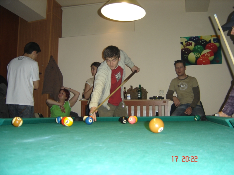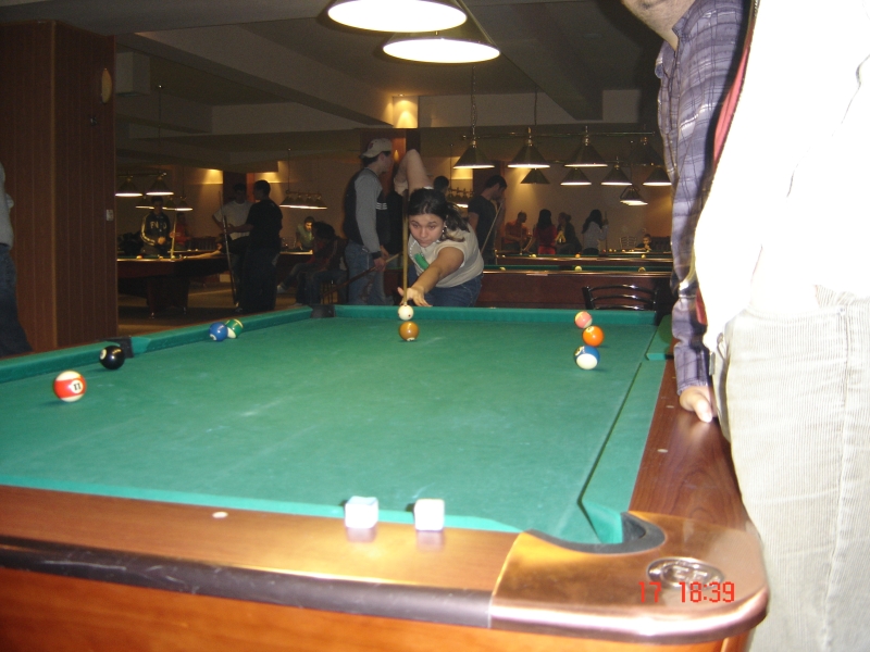 super intilnire si juma de ora de bile....am fost devastati de un profesionist ce veni cu tacul de acasa si de mihai care a mutat la un moment dat bila alba intr-o pozitie convenabila si care nu intelegea cum aparea bila rosie mereu pe masa ....