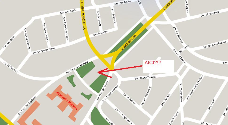 eu as veni pe trafic greu - fac dreapta la razoare o iau inainte si cobor acolo in valea spre eroilor...si aici se taie filmul, cum fac? tin banda din stanga si fac repde stanga acolo si opresc?