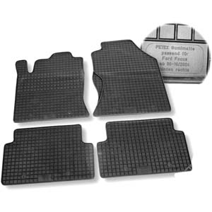 As dori un set de covorase interior din cauciuc, culoarea gri-inchis, cu bordura, foot-rest si anti-alunecare pt Ford Focus 2 sedan.