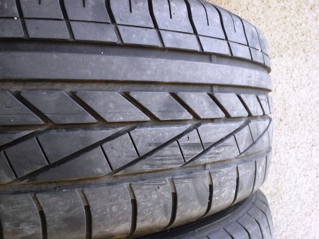 Nu conosc rulajul acestor anvelope insa arata bine. Unul singur are un "dop" pe partea de contact (deci e ok)