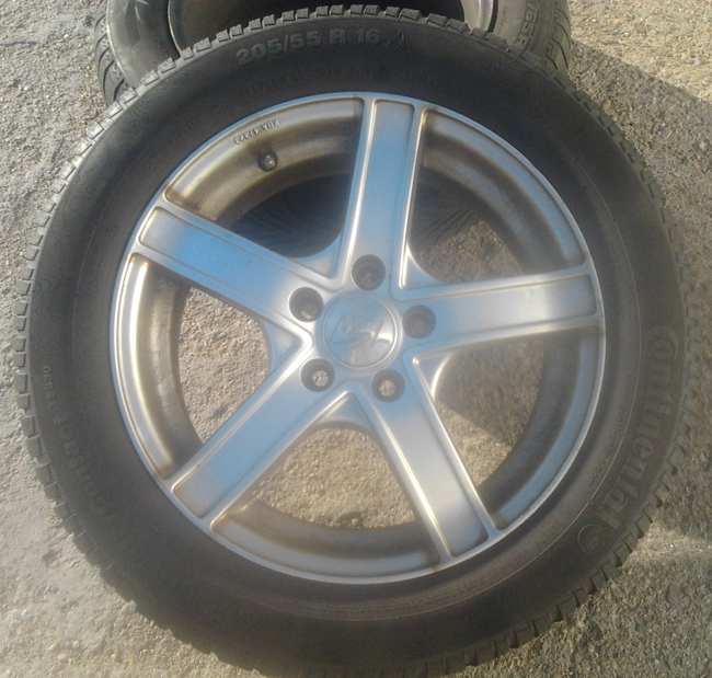 -jante din aliaj , R16, cu cauciucuri de iarna, 205/55/16, Continental ContiWinterContact cu profil aprox. 2x7,5mm si 2x6mm. 2 buc au DOT 2509 respectiv DOT 2310