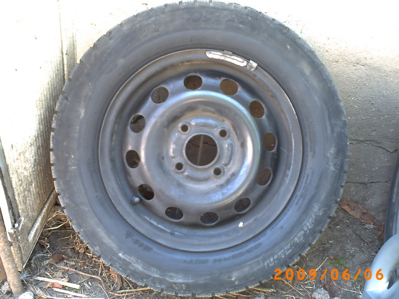 Mai am 4 jante de tabla 4x 108 14"cu cauciucuri bune de iarna Michelin 185/65/14" ,puilite +4 piulite antifurt. pret 500 lei