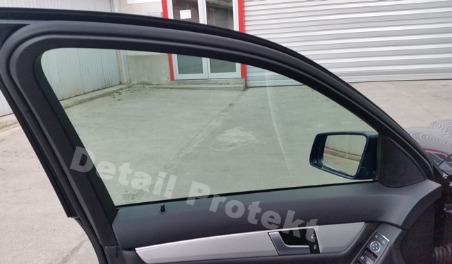 Pe geamurile acestui Mercedes C s-a aplicat folie ceramica LLumar. Transparenta foliei de pe laterale spate si luneta este de 38% si are puterea de respingere a energiei solare de 51%. Foliile ceramice au grosimea de 45μ si resping pana la 99% razele nocive ultraviolete. Pe laterale fata s-a montat o folie ceramica din gama AIR cu o transparenta de 74% si performanta de respiungere a energiei solare de 41%, avand o garantie de 12 ani.