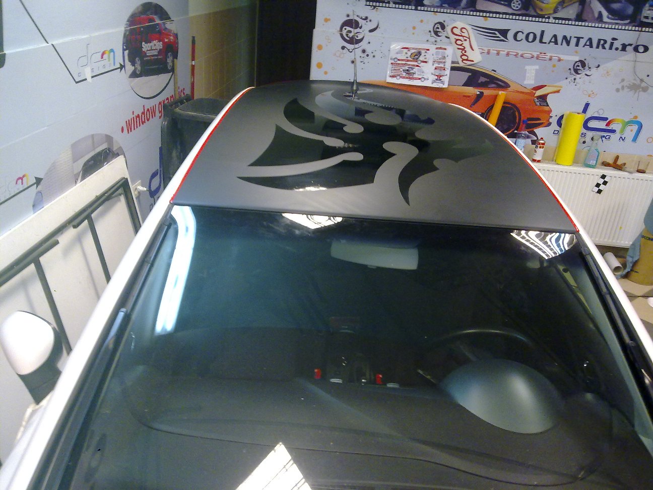 intereseaza colantarea capotei fata numai pe mijloc intre nervurile in "v" si oglinzile lateralem