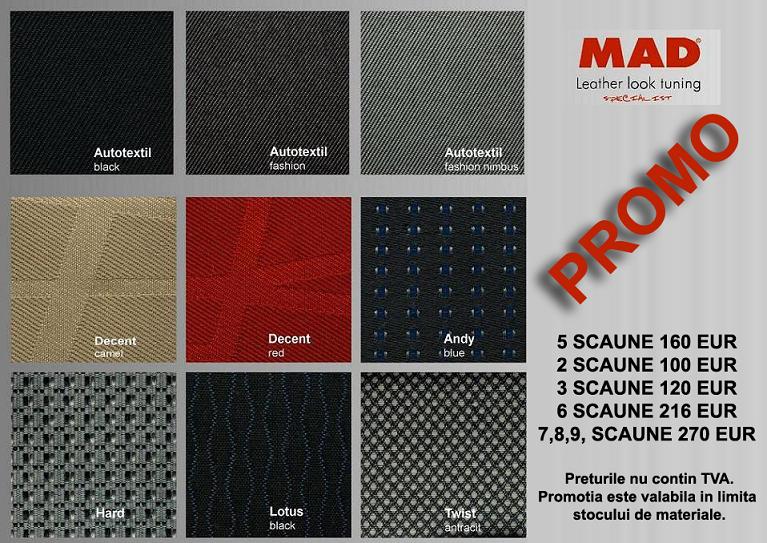 2. Decent Red, Decent Camel, Decent Black, Piano Black, Andy Blue, Lotus Black, Twist Antracit, Sprint Antracit, Hard, Bambo Antracit, Bambo Camel si RS Design Gray - materiale de interior
