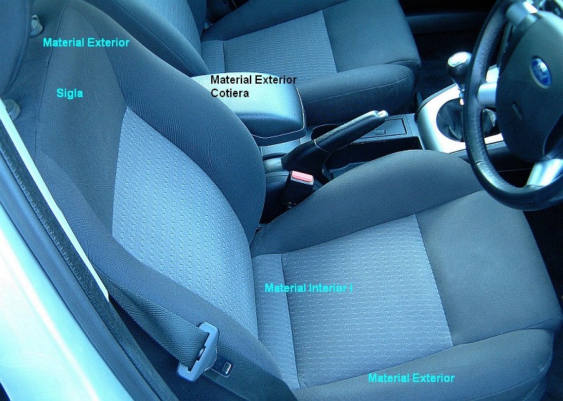 Modelul din pozele atasate nu are huse montate peste, dar daca doriti exact aceleasi culori va putem ajuta la partea cu materiale insa va mentionez ca materialele sunt originale VW-Audi, si nu Ford. Exista insa o varietate de materiale din care puteti alege.