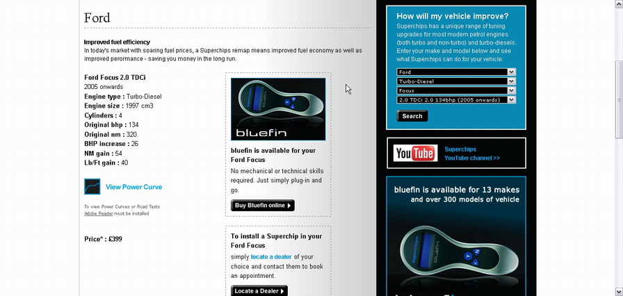 De asemenea in premiera pentru piata din Romania, Superchips ofera Bluefin, un dispozitiv electronic prin intermediul caruia fiecare isi poate modifica singur masina in cateva minute. Pretul unui dispozitiv Bluefin este intre 299 si 499 lire sterline (TVA inclus) + transport. Mai multe detalii despre Bluefin gasiti aici: http://www.superchips.ro/website/Bluefin.html