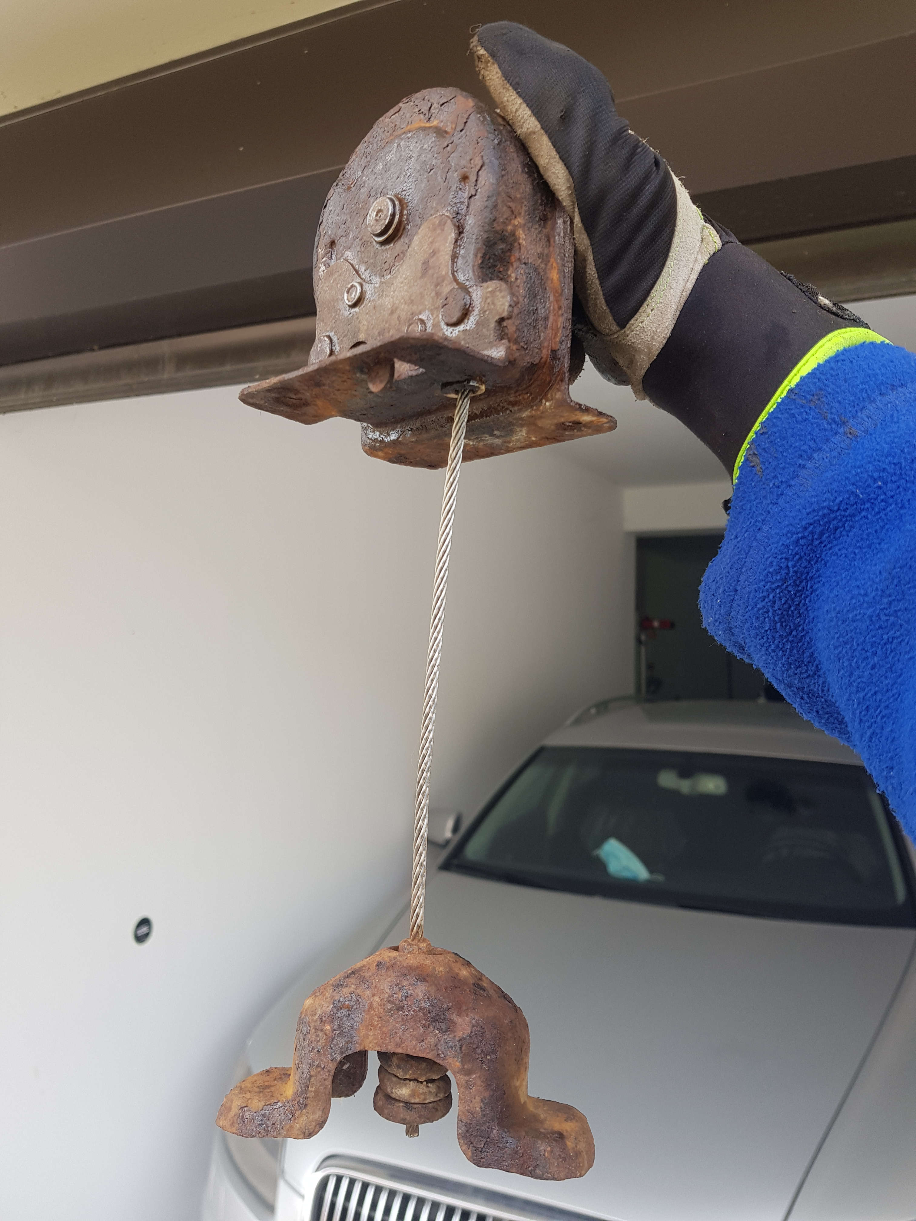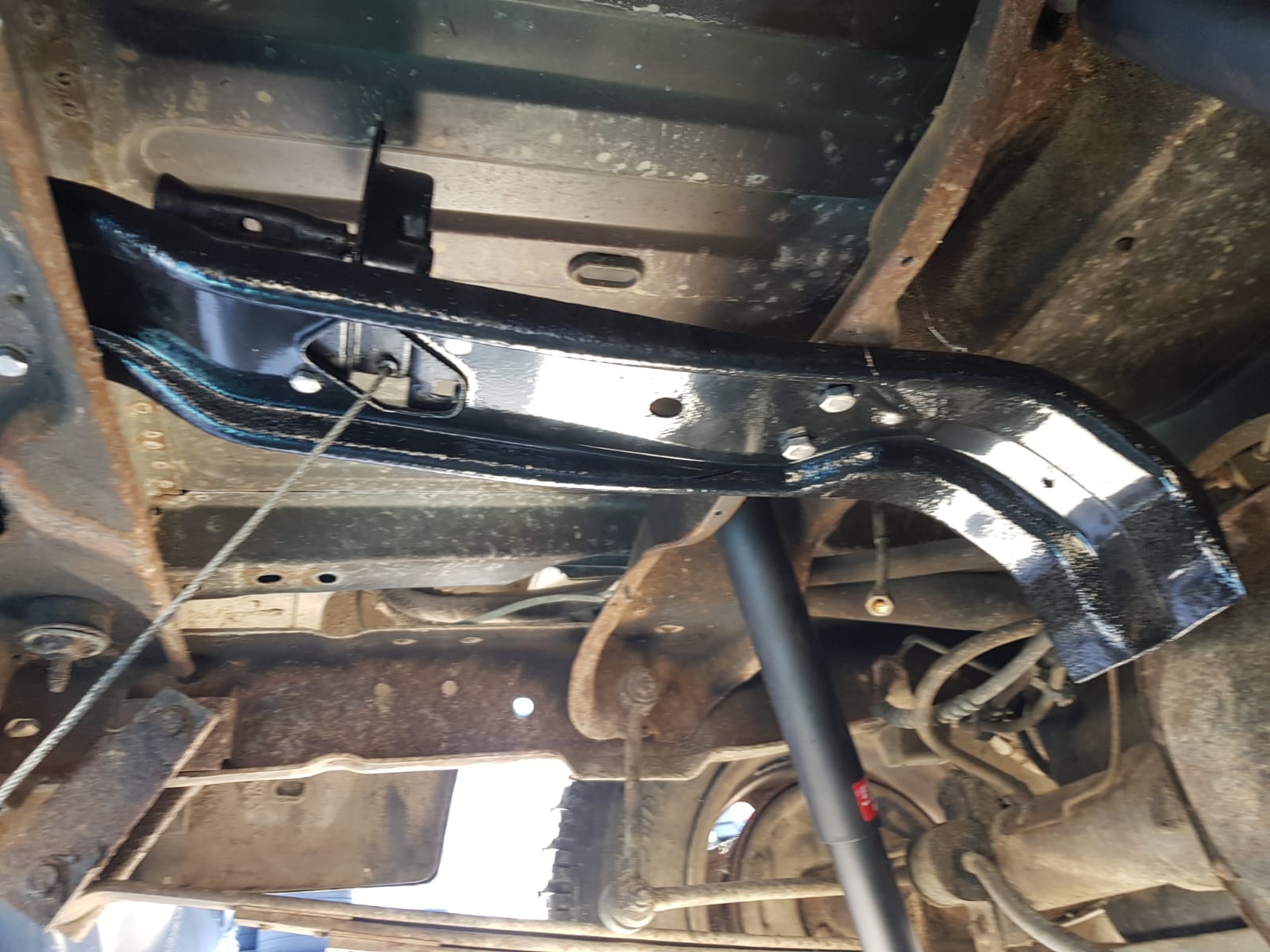Sistemul rotii de rezerva lipsea cu desavarsire fiindca aceasta fusese inlocuita cu butelia de GPL. Am reusit sa procur unul (o sa precizez in curand cum) si, dupa ce i-am acordat putina ingrijire, l-am montat pe masina:
