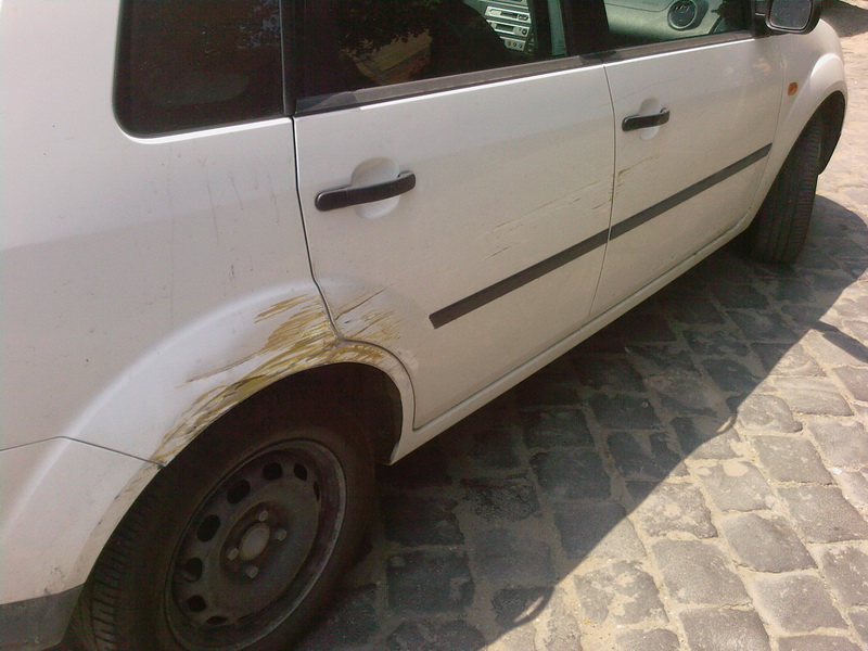 aia rosie e in service acuma, mi-a sarit o bordura in fata si n-am mai putut opri