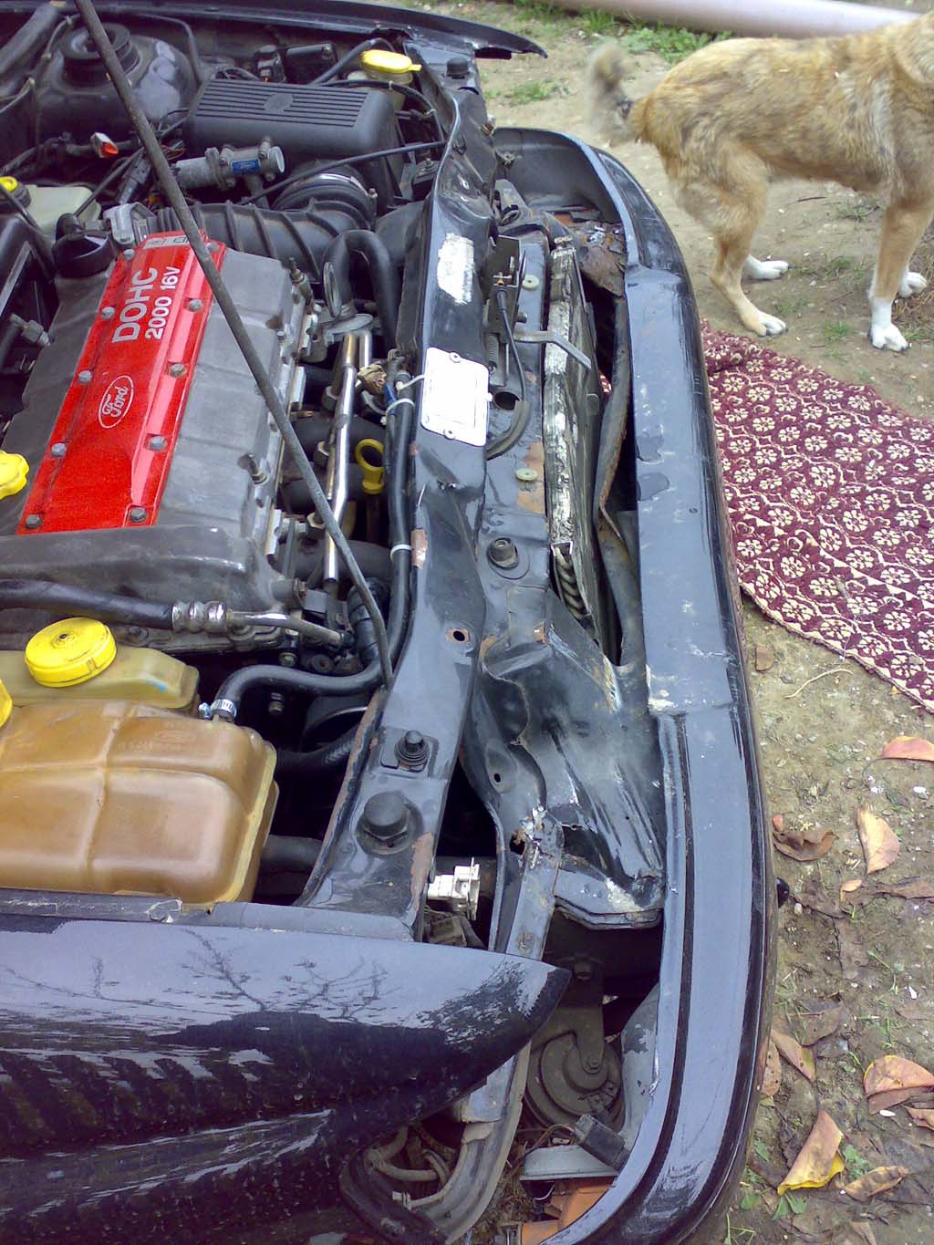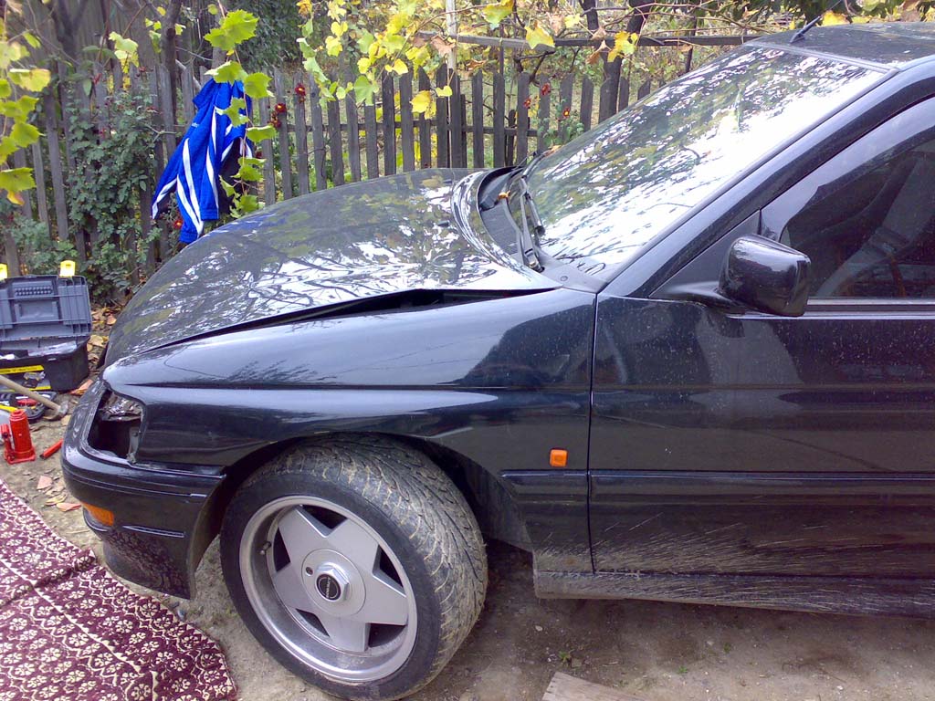 si e lovita in fata, e spart radiatorul de aer , radiatorul normal , farurile , bara , proiectoarele , capota e stramba ...