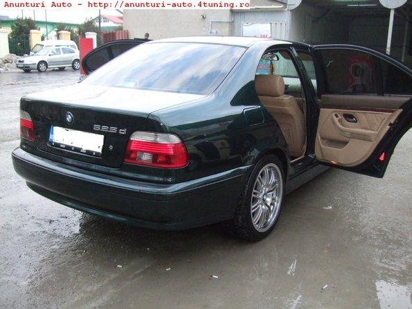525d din 2002. manuala 5+1, 190+cp cu optimizare soft hartge(nu stiu daca am scris bine) 150.000 km, model facelift, culoare verde inchis cu tenta de negru, jante 18, interior piele crem cu mahon(sau plastic de culoarea mahonului), pilot+tempomat,full xenon, dsc, dublu clima, oglinzi+geamuri el si heliomate,pachet lumini int+ext, pachet crom exterior, stopuri led look m5,navi+tv, scaune incalzite, webasto, si cam atat cred...daca am uitat ceva sorry...poze inca nu i-am facut dar promit ca o sa pun...pret...am dat dyk-ul la schimb si am mai primit 1000 euro...ca impresie in 500 de km cat am facut pana acum sunt uimit de consumul extrem de redus raportat cu puterea masinii si motorul mare, in 500 de km facuti numai in oras in bucuresti cu clima pornita am un consum mediu de 7.3. consumul l-am resetat cand am luat masina, atunci avea 6.9 dar mi-a zis propietarul ca el nu l-a resetat niciodata. masina merge impecabil trage de rupe, confort de nota 10...sunt fff multumit