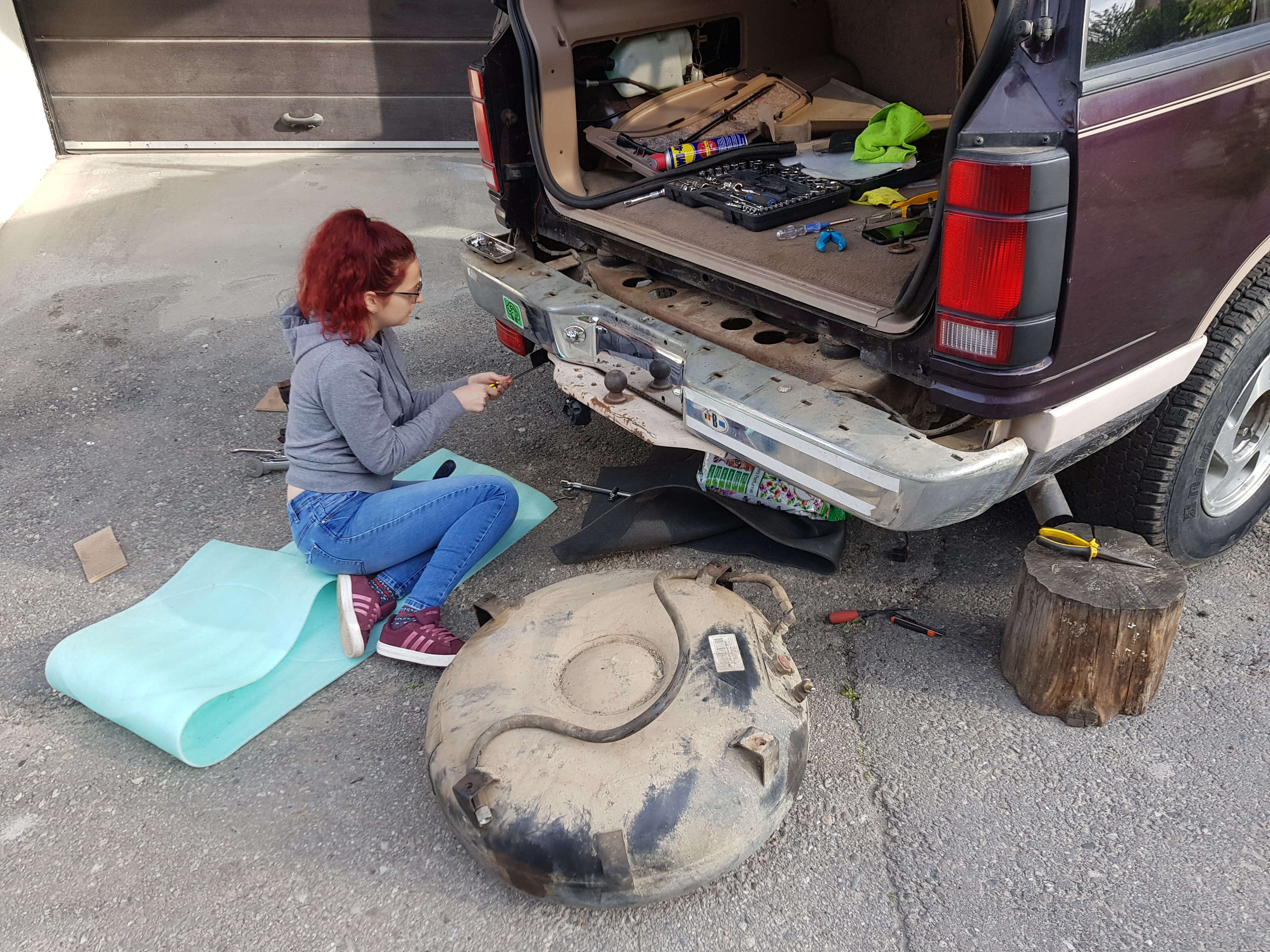 Din primele cercetari, masina avea nevoie de mici reparatii, dar principalul (aproape) functiona. Motorul se aude/comporta ok, cutia parea ca schimba (1-2 fiindca nu era inmatriculata si testam doar pe alee), dar nu cupla 4x4. Am gasit toate informatiile necesare pe un forum din State si, cu indicatiile de acolo, am rezolvat problema. In continuare, noroc cu lock-down-ul ca nu aveam alte activitati si puteam sa-mi fac de cap la masina. A urmat demontarea instalatiei de gaz, montarea unui radio-casetofon "din epoca", schimburi de diverse (stergatoare, becuri, filtru aer).