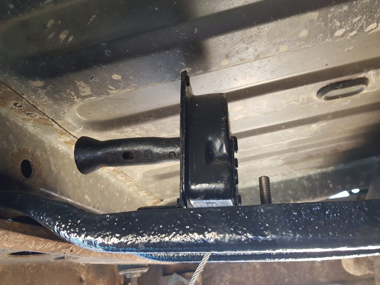 Sistemul rotii de rezerva lipsea cu desavarsire fiindca aceasta fusese inlocuita cu butelia de GPL. Am reusit sa procur unul (o sa precizez in curand cum) si, dupa ce i-am acordat putina ingrijire, l-am montat pe masina: