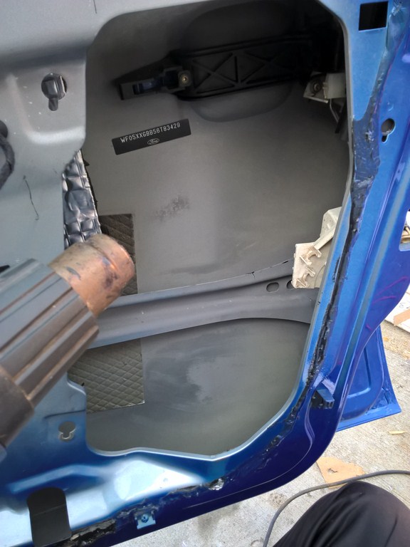 Am dat cu ceara in usi si cu ce material mi=a ramas am pus la pasager.