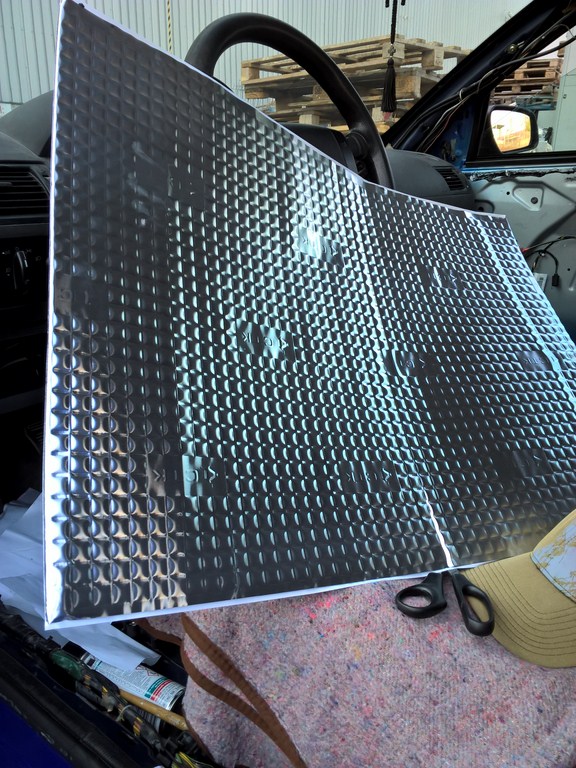-am cumparat si cel de-al patrulea pachet de CTK 3,6 mm, tot de la Beloud si deja sambata am scapat de el, l-am pus pe plafon si 3 usi pe interior,in total 74 kg adaugati pe masina insa oarecum distribuiti egal.Mai am nevoie de 3 foi ca sa termin o usa de izolat si locasul la roata de rezerva.