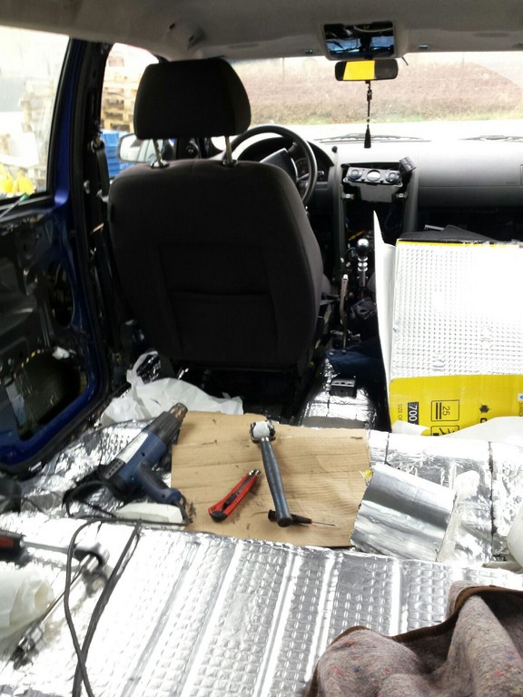 1.Am pus insonorizant pe podea sofer/pasager pana la bancheta spate inclusiv jumatate de bancheta.