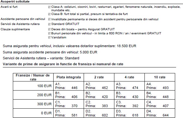 Atasat este oferta de CASCO ce am primit-o si acceptat-o eu (am primit de la mai multe firme).