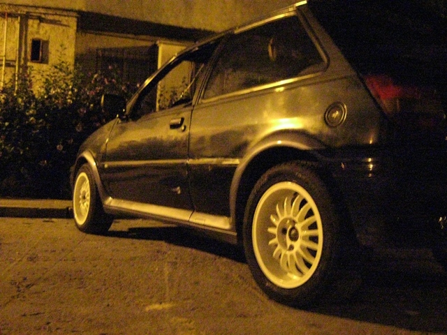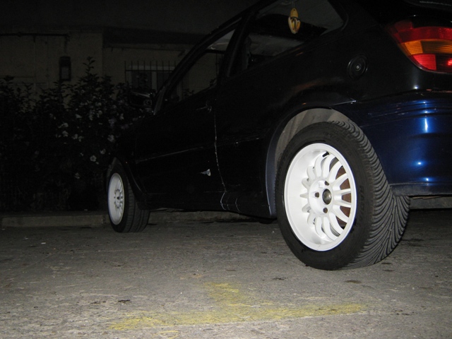 HOT WHITE NEWS: :D Mi-am montat aseara arcele de la aripi si pragurile si mi-am montat si jantele pe masina in aceasta minunata seara :D/ si am constatat faptul ca nu atinge/nu freaca pe nicaieri si ca nu am absolut nicio problema in a le folosi fara sa ii mai pun flansele distantiere (de care chiar ma temeam sincer ca o sa imi iasa roata in afara prea mult 2-3cm :-S ) si fara sa ii mai intaresc amortizoarele si sa le mai las+sa comprimat arcurile... ea e mai inaltuta acum cu jantele astea ce le-am pus dar mie imi place... inainte aveam jante de tabla 155/70 R13, iar cele de acum sunt 185/55 R15 pe fatza si 195/55 R15 pe spate :D Noroc ca am talonul nou si nu scrie dimensiunea jantelor :)) Ideea e ca nu am putut sa le las asa in seara asta pentru ca imi trebuie piulite pt jante de aliaj + ANTIFURTURI :))... maine dimineata sunt la prima ora sa le cumpar, nici nu dorm in seara asta de ele :)) (glumesc :D ) Deabea astept sa vad cum o sa fie cu ele in mers 8-> :x Ce parere aveti despre modificari? :D ;;)