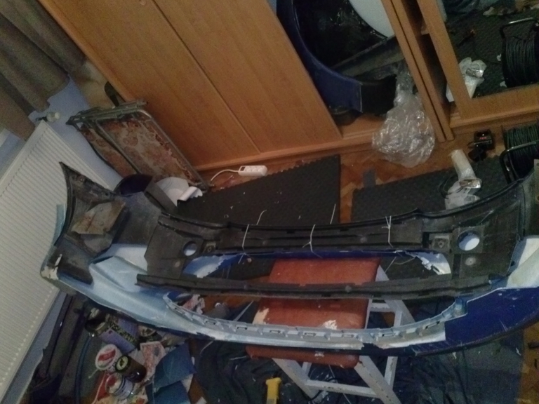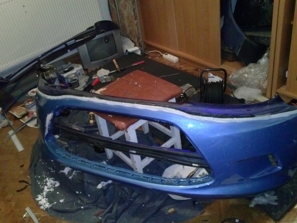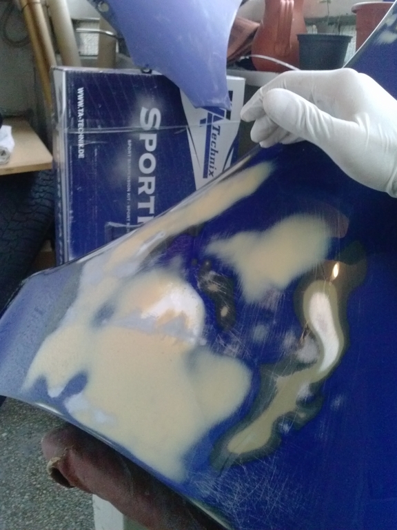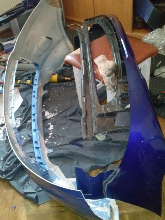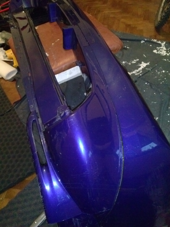 Am reusit sa fac bara de Fiesta 7 sa se aseze pe cadrul facut din intaritura barei de puma si cochilia in portiunea superioara, nu prea se face dupa mult sculptat cu pistolul de aer cald si cutterul.