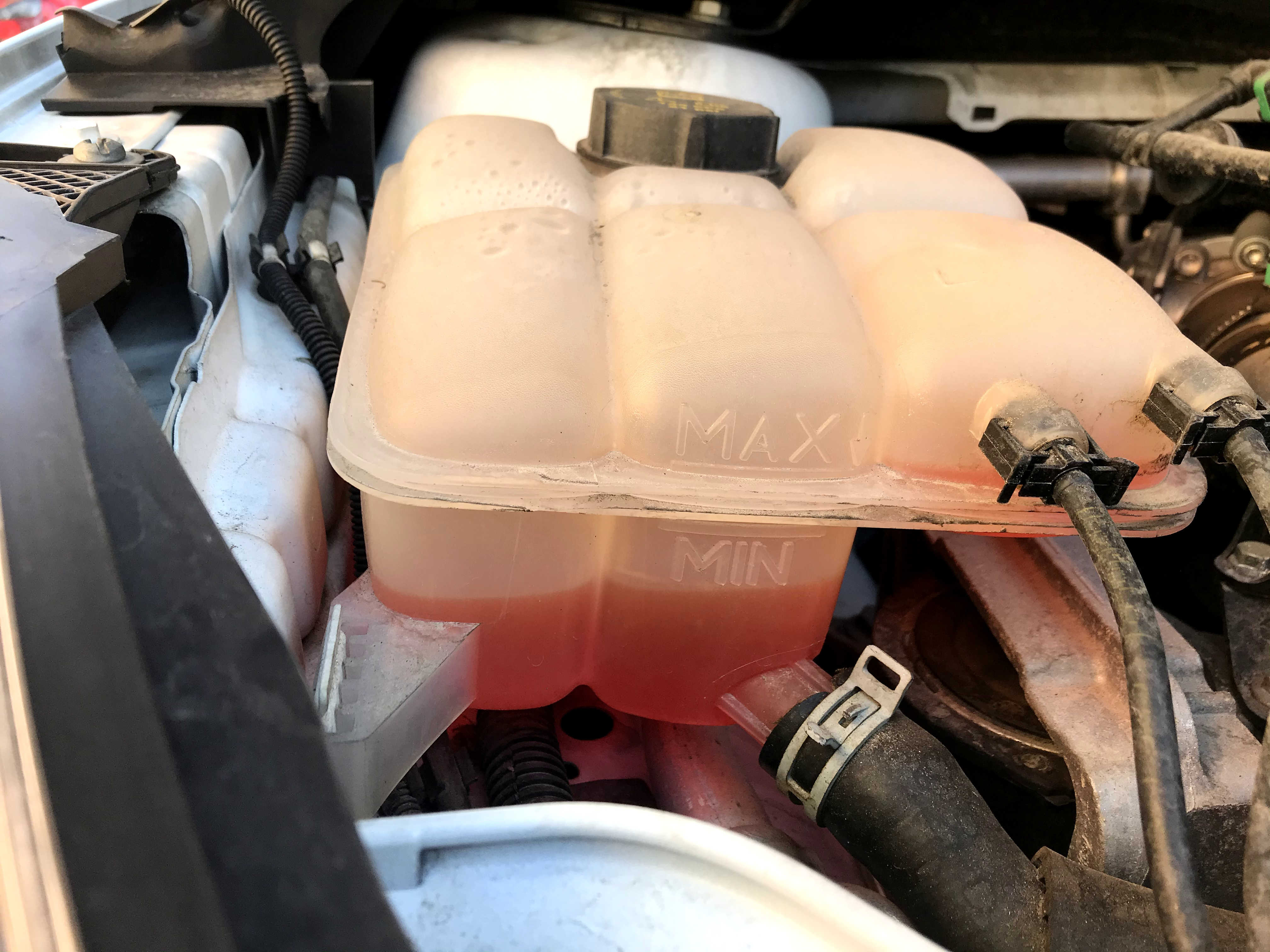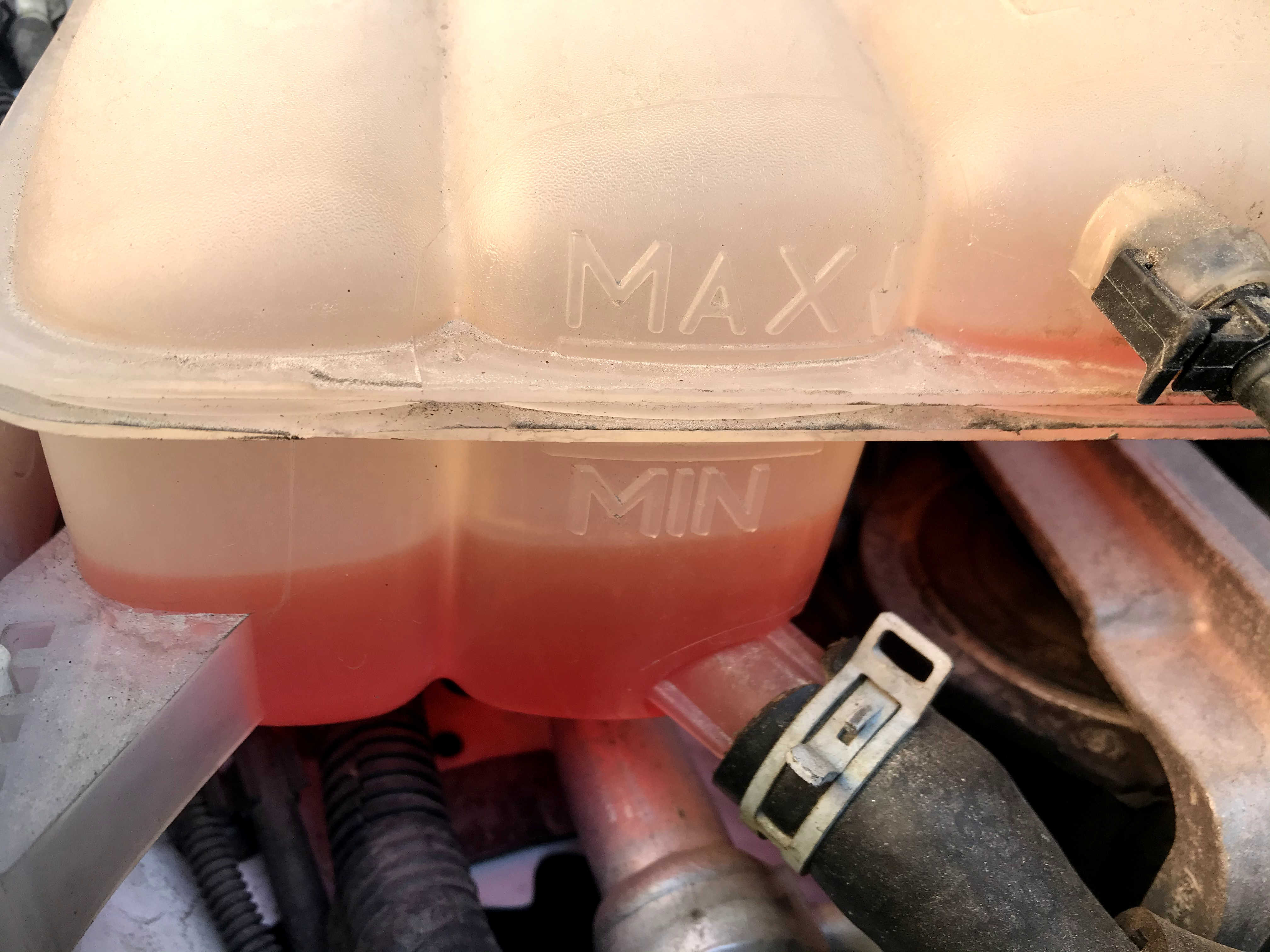 Azi am verificat nivelul de antigel, fără vreun motiv anume, doar așa de siguranță. Și am constatat ceea ce se vede în imagini. Cred că nivelul este mult sub minim, dacă interpretez corect marcajele de pe vasul de expansiune. La momentul verificării mașina staționa de aproximativ 3 ore, deci motorul era rece. Nu am verificat și cu motorul cald, cum arată, dar voi face asta. Acum întrebare: dacă cu motorul cald, nivelul e ok, mai completez sau nu, cu antigel? Știu că la aceste motoare nivelul fluctuează, în sensul că se cam consumă antigelul, dar așa mare diferență nu prea cred că este normală. La revizie în octombrie, totul era normal. Nu curge pe nicăieri nimic.
