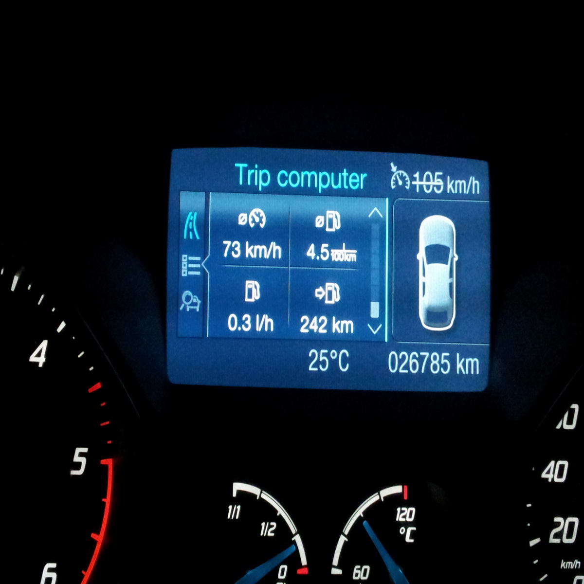 Venind zilele trecute de la un drum mai lung si plictisit de peisajul monoton am zis sa mai dau o raita prin meniu sa mai vad cum stau cu floricele la economic, schimb de viteze etc ... Nu mica mi-a fost mirarea sa vad ca mi-a aparut o chestie care pina acuma nici nu o mai vazusesm. Calculatorul masinii face un fel de medie intre drumuri si iti spune din totalul drumurilor efectuare cate au fost facute cu motorul rece. Adica ai pornit cu motorul rece ... ai oprit motorul fiind tot rece.