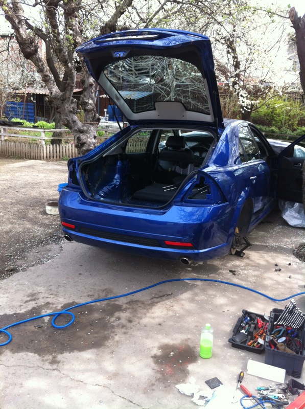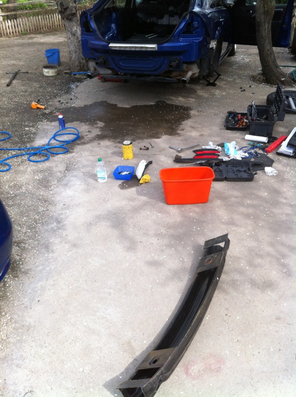 #1) Cu ocazia schimbării barei din spate, maşina a trecut printr-o parţială curăţenie de primăvară . Am descoperit că a avut cândva stopurile scoase (nu de către mine) şi remontate prost (garniturile nu au fost reaşezate cum trebuie). Apa de ploaie intra in portbagaj, printre stopuri şi caroserie, cu tot cu "aluviuni".