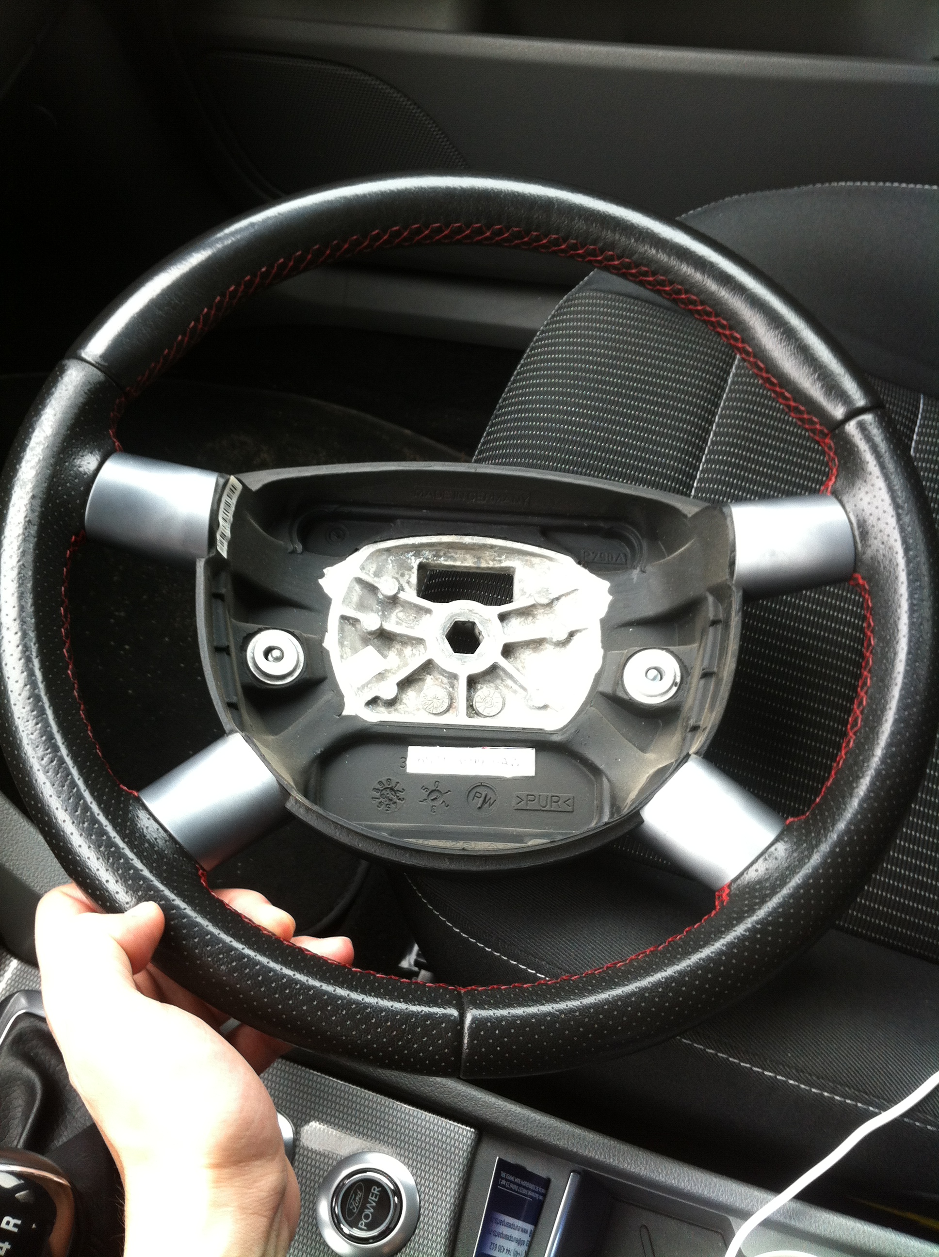 #2) Volanul era putin tocit si lucios asa ca l-am retapitat in combinatie piele perforata + alcantara, pastrand culoarea originala rosie a cusaturii. Am apelat la serviciile user-ului