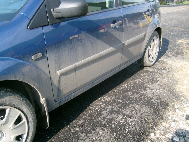 dupa un drum constanta-lepsa (vrancea) asa arata masina... ultimii 25 km erau in lucru, numai gropi, mers cu viteza 1 si cateodata chiar si treapta a 2-a. mers incet si tot am atins masina de 2 ori cu o aparatoare de noroi. din fericire aparatorile sunt foarte flexibile si nu au fost probleme.