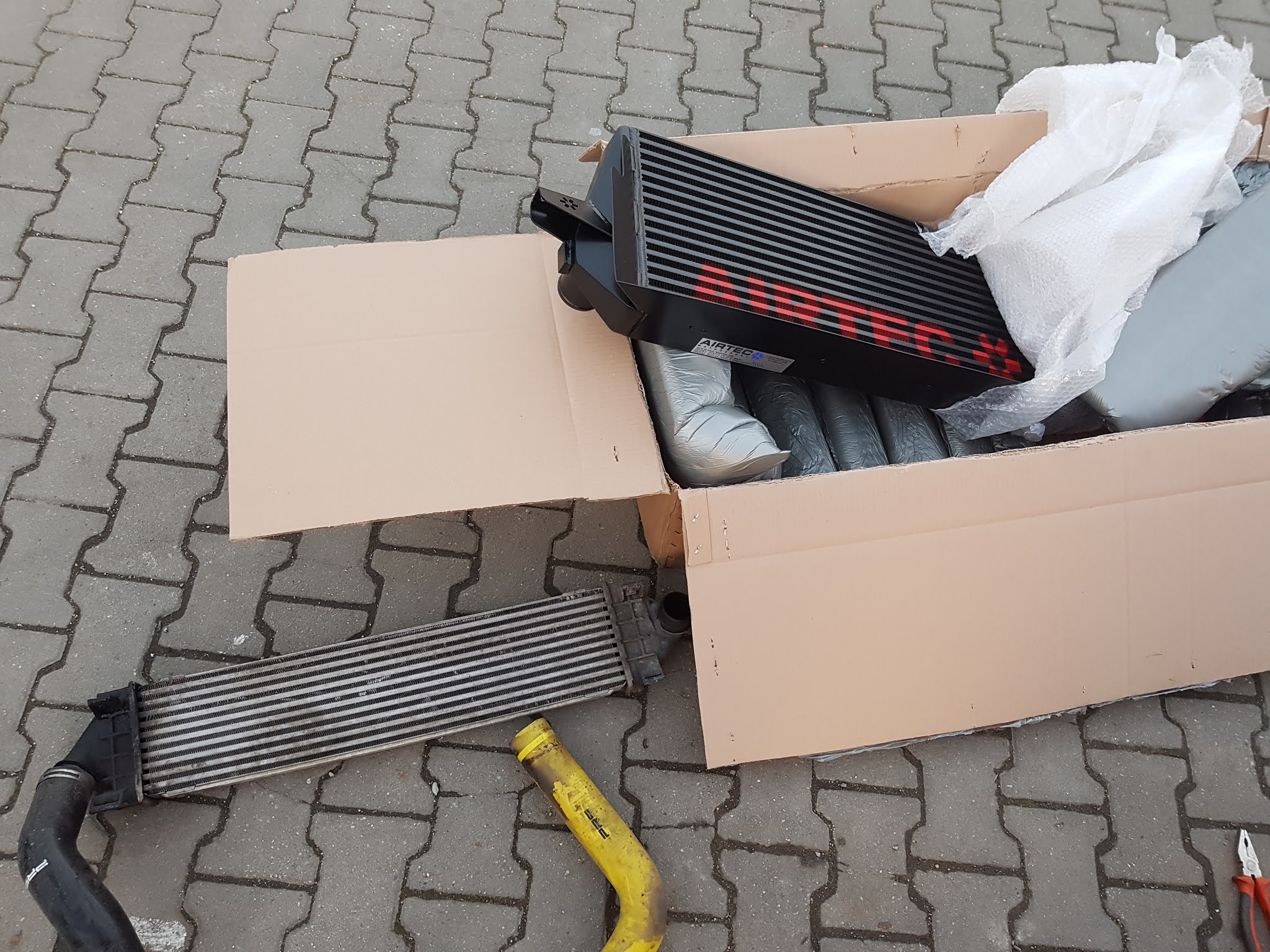 -Radiator extern AIRTEC(nemontat-îmi trebuie un termostat montat pe traseu, furtune AN 10 și un oil plate adaptor care urmează să fie montat pe baia de ulei!);