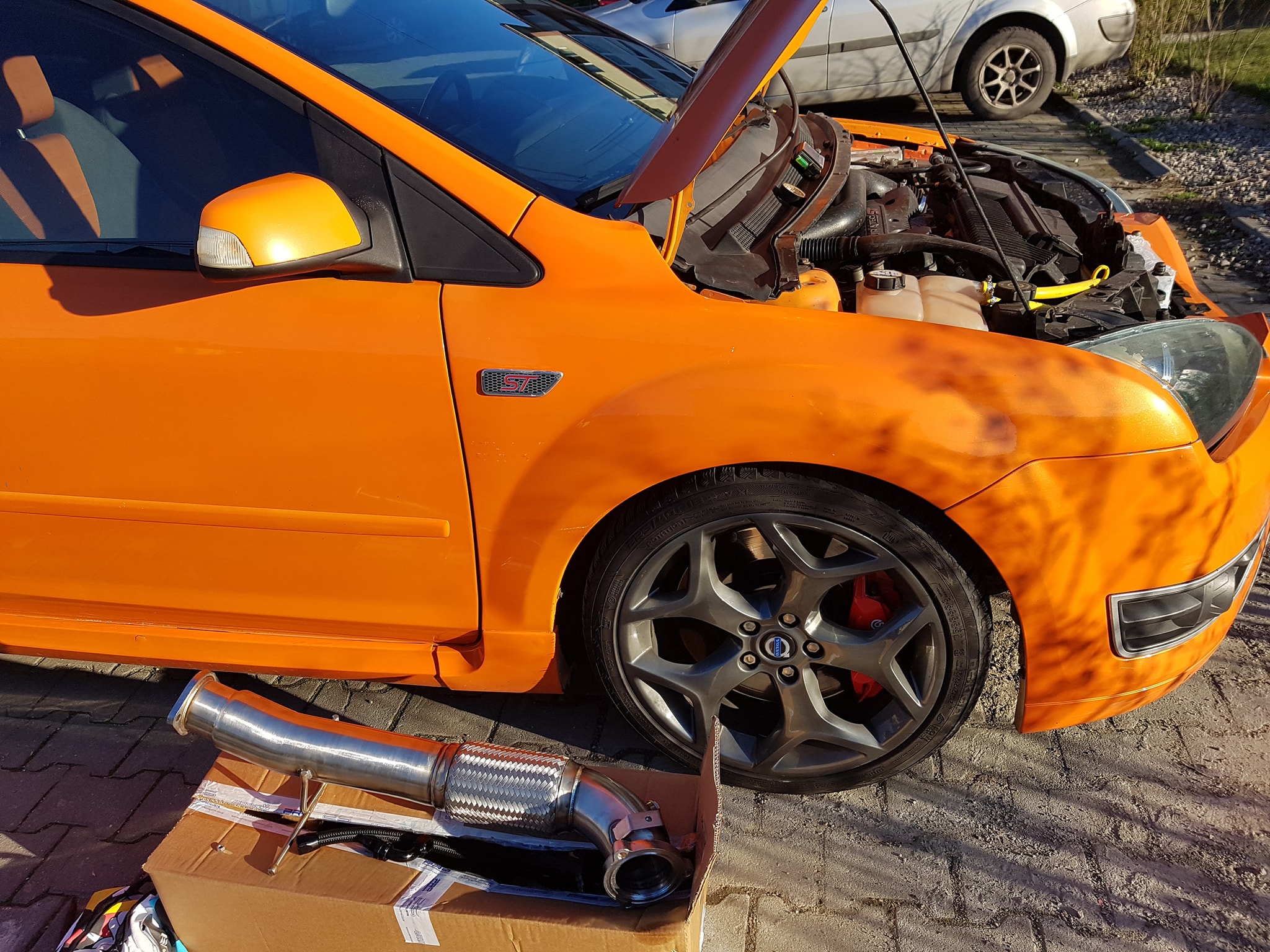 * intre timp sistemul de evacuare a ajuns la DB50rin, fiind putin cam galagioas pentru uz zilnic! Este in plan un sistem de evacuare Milltek Ultimate de Focus RS mk2, cu rezonator( va fi de RS pentru ca vine si cu doua back-box-uri, design asemanator cu KMS Thunderstorm, in timp ce pentru ST designul este cu rezonator intermediar si de acolo, straight pipe), in speranta ca sunetul va fi mai placut si masina se va auzi agresiv doar atunci cand va fi "abuzata"!(KMS ul se auzea foarte tare indiferent de cum foloseam masina)