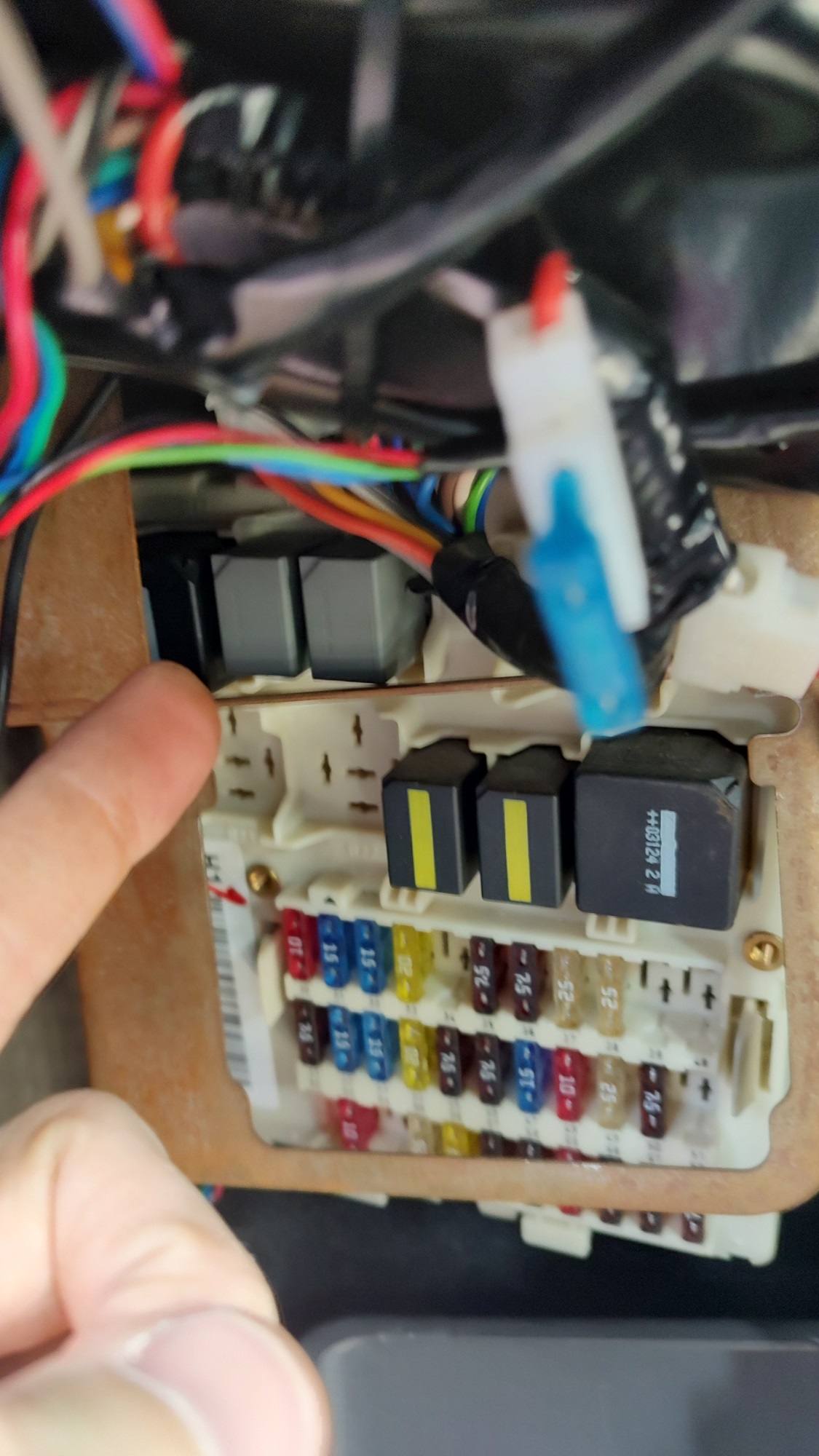 Cele doua relee sunt cele gri deschis, trebuie dat jos panoul de sigurante pentru a ajunge la ele.