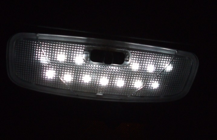Mai precis in loc de becul de la plafoniera care da u lumina palida ca de lumanare am montat LED-uri. Observati lumina alba care cade pe bord si pe volan (nu cea galbena de la iluminatul public).