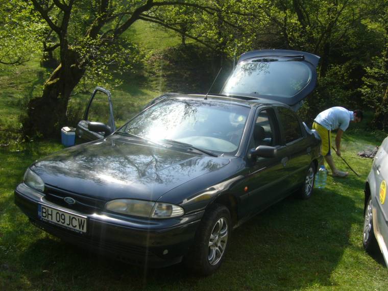A urmat asa: taiat si inlocuit tabla, praguri si aripi spate cu piese originale, dat cu ceara de protectie pe interior, vopsit piesele respective, montat eleron pe hayon, vopsit spoiler fata, inlocuit galerie evacuare. Costul total pt. munca si toate piesele de mai sus a fost in jur de 1650-1700 lei. Deocamdata totul arata fara probleme, sper sa tina cam 4-5 ani macar fara rugina. Investitia am facut-o cand am realizat ca nu am bani de o masina mult mai noua, gen 3-4 ani vechime maxim, si nu sunt dispus sa renunt usor la Fordul meu, sa il las in paragina si sa ma uit la el cum se distruge. Au fost ceva cheltuieli, dar numai ca sa ii pot da o noua viata, cum s-ar zice. Nu mi s-a parut o idee buna sa o vand, si sa iau o masina aproximativ de aceiasi varsta, dar cu alt set de probleme si aventuri, numai ca sa ma pot lauda ca mi-am schimbat si eu masina. Tot din acest motiv nu am renuntat in acesti ani sa imi refuz mici placeri cum ar fi drumuri la munte ( cam 30 de excursii cu masina mea ), trei sejururi la mare in Grecia, si alte aventuri, mai mult prin Romania si Ungaria.