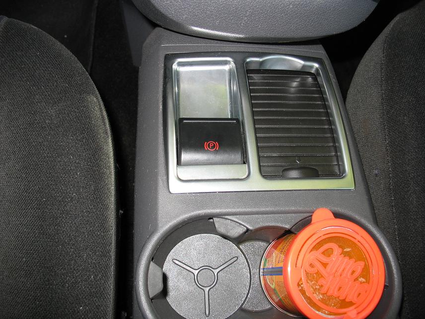 frana de mana e clapeta aia din poza. clapeta comanda un motoras care elibereaza sau trage frana de mana. la oprirea motorului, frana de mana este trasa automat. la plecare, trebuie sa ma uit pe bord dupa ledul ce indica starea franei de mana, altfel nu-mi pot da seama daca e trasa sau nu.
