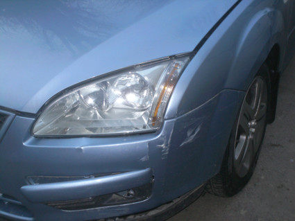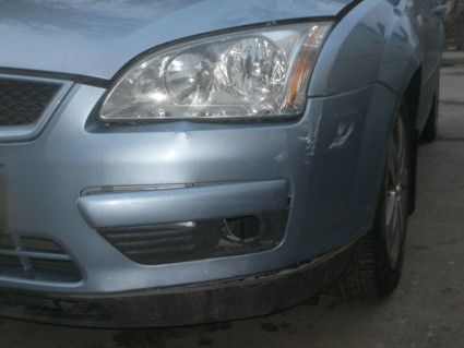 Suna telefonul azi pe la 17, un vecin, "coboara la masina repede ca a intrat unu' in masina ta". Focusul era parcat in fata scarii, a venit o dacie solenza albastra cu nr B-96-CVU cu viteza de pe strada perpendiculara si n-a mai luat curba. Se observa o urma de franare pe asfalt de vreo 3m, si s-a oprit intr-a mea. Far stanga crapat, proiector stanga sub masina, bara fata stinga + accesorii sparte, aripa stanga fata indoita, roata stanga fata nu mai calca cum trebuie, roata dreapta fata + capac spart in urma coliziunii cu bordura. Am fost la Politie pe Calea Grivitei 355, (strada pe care era parcata este in sect. 1), am facut constatarea si am dat declaratia. La adresa respectivului nu este trecut nici un nr de tel, asa ca il asteapta 24 de ore sa se prezinte, dupa care ii trimit citatie. O pot repara pe CASCO-ul meu, urmand ca apoi ei sa-si recupereze banii de la soc. tipului, dar in acest caz ma costa fransiza de 100 de euro, sau astept sa recunoasca tipul si atunci nu ma costa nimic. Dar ar putea dura pana la 25 de zile, cica. Vecinii mi-au spus ca avea si semn de incepator. Ma rog, conteaza eventual pt statistica. Ar fi totusi o problema. Daca vecinii s-au inselat (desi din verificarile lor a reiesit ca auto cu nr respectiv este intr-adevar o solenza albastra), si tipul e chemat degeaba la politie, ma poate actiona in instanta. Daca o fi unu' procesoman... Am tras-o pe dreapta si de maine cu reatebeu'... Maine dim ii fac si niste poze.